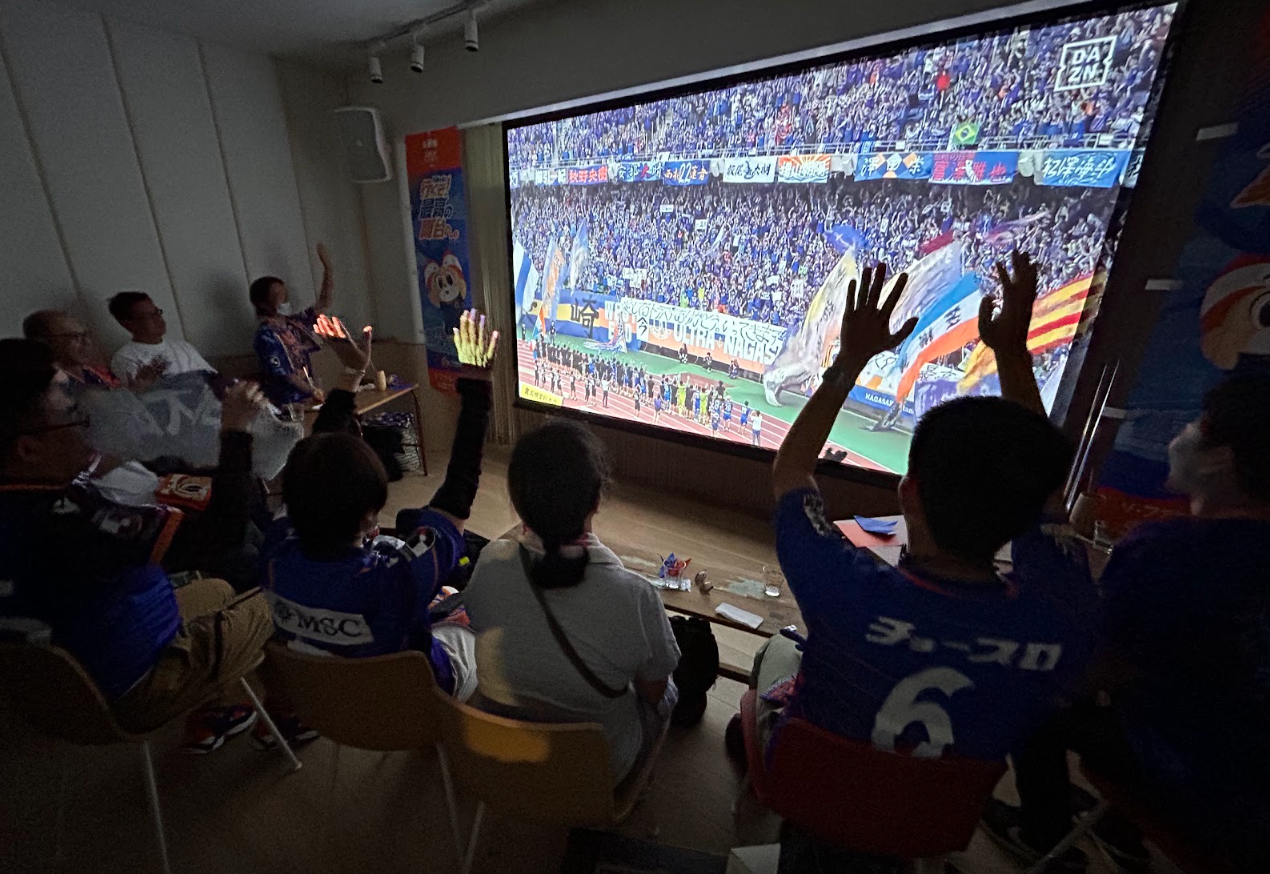 壁一面、迫力のスクリーンで楽しむスポーツ観戦会を定期的に開催しています
