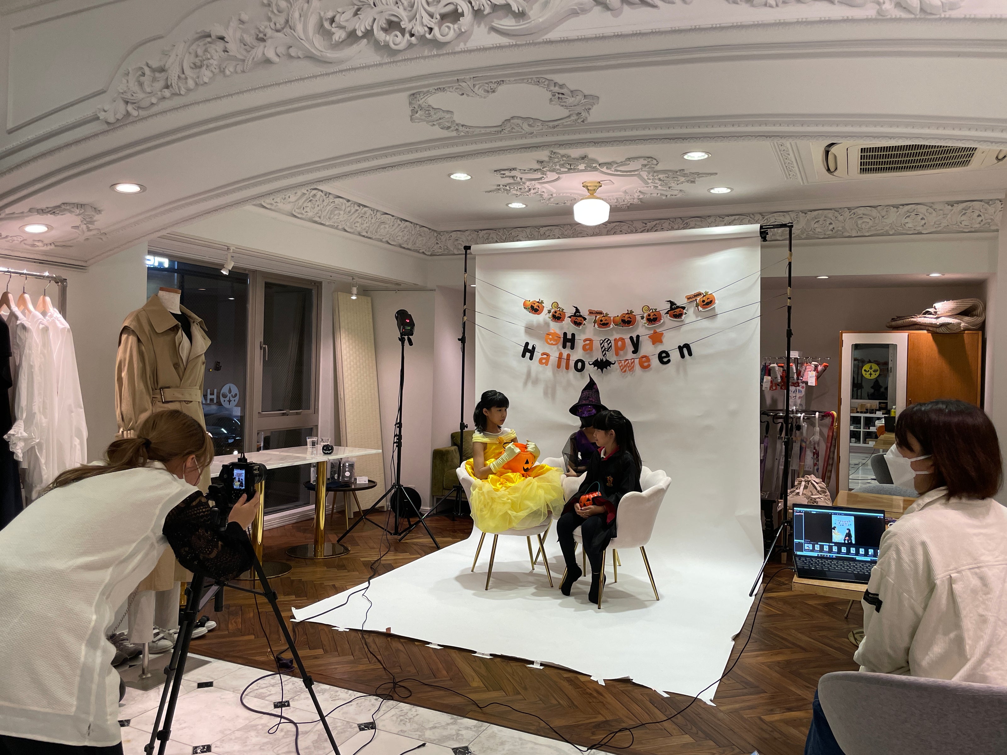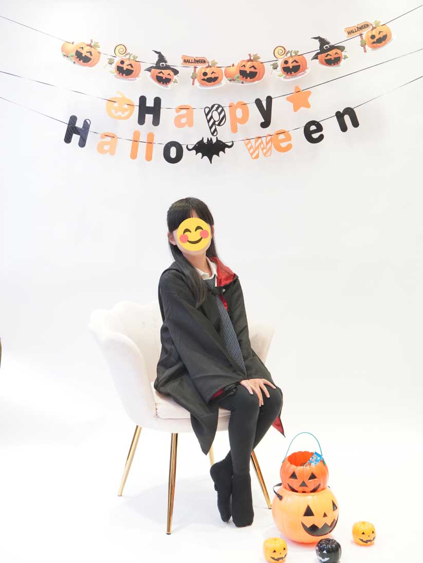 店内特設スタジオで、ハロウィンの装飾と共に簡単に本格的な写真撮影ができます。