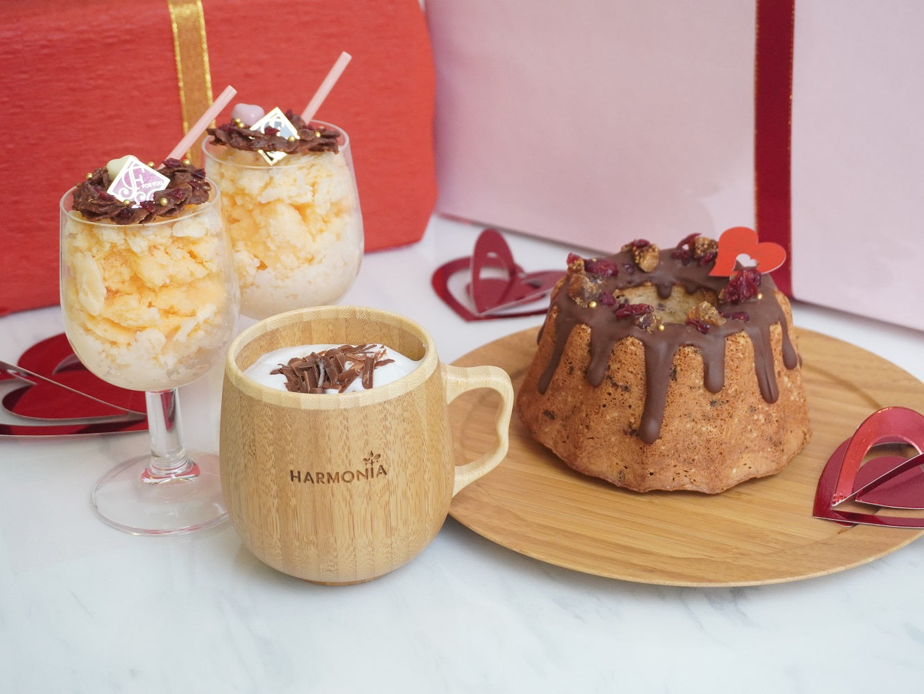 HARMONIAでは、バレンタインを楽しんでいただく季節限定メニューや、プレゼントにおすすめのアイテムなどを数多くご紹介しています。ラッピングが無料になるキャンペーンも実施中!この機会に是非、ご利用ください♪