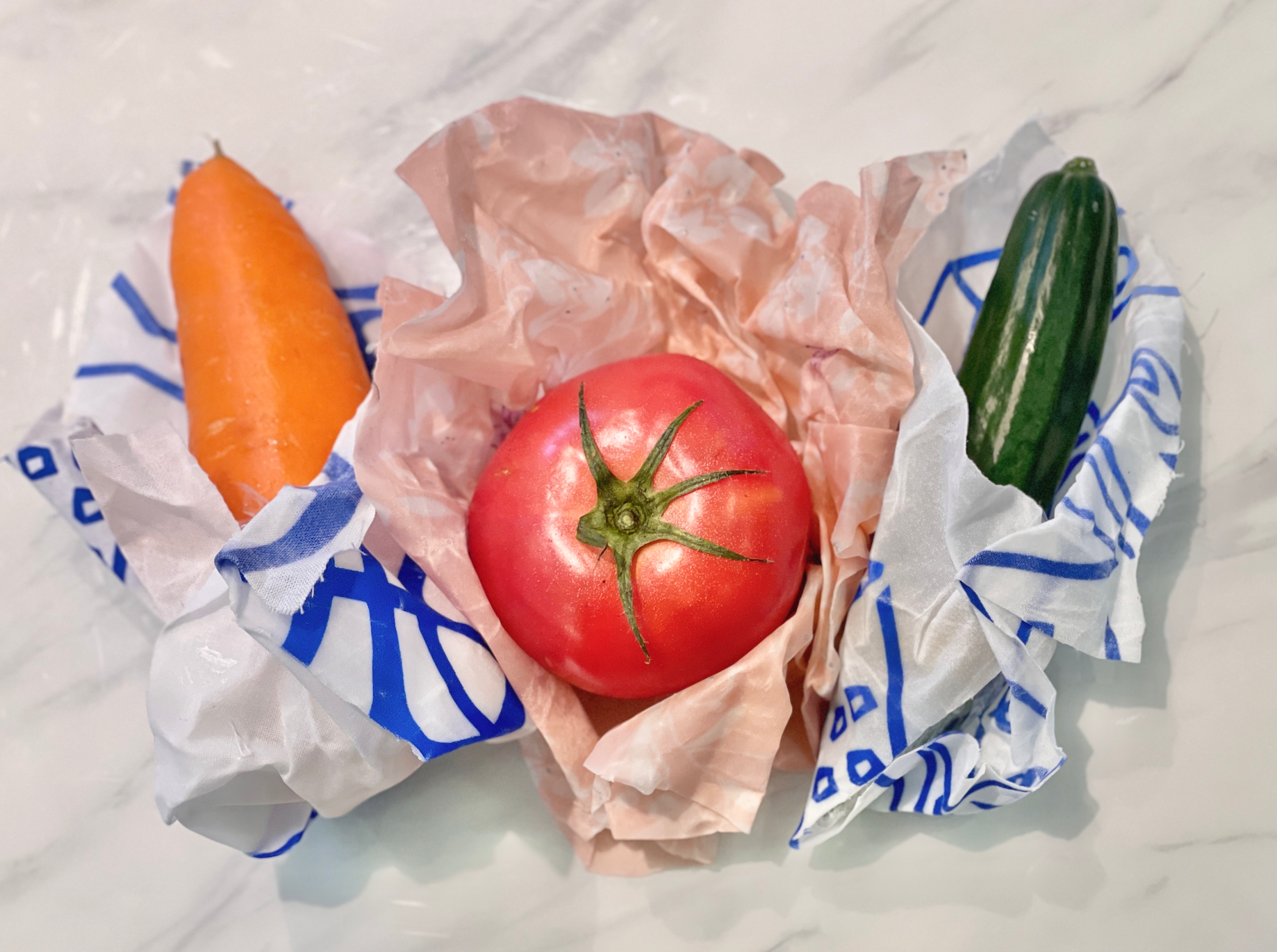 脱プラスチックのために、繰り返し使えるサスティナブルなキッチンアイテムとして注目のエコラップを導入。店舗では、パンや野菜の保存に利用しています。