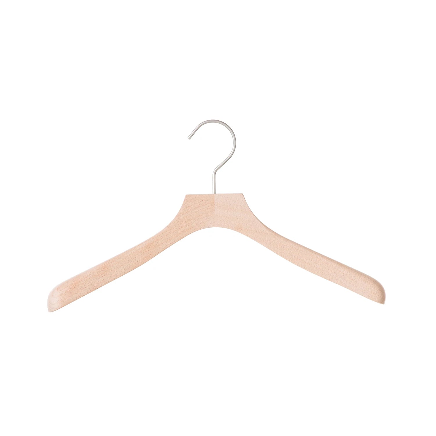 店舗では、節があることで難ありとして避けられていた木材や、燃料・パルプ用として集められた端材から作られたハンガーを利用しています。間伐材利用だけではなく、天然のリラックス・アロマ効果、消臭、抗菌、防虫効果も備わっている、檜素材という点も魅力です。