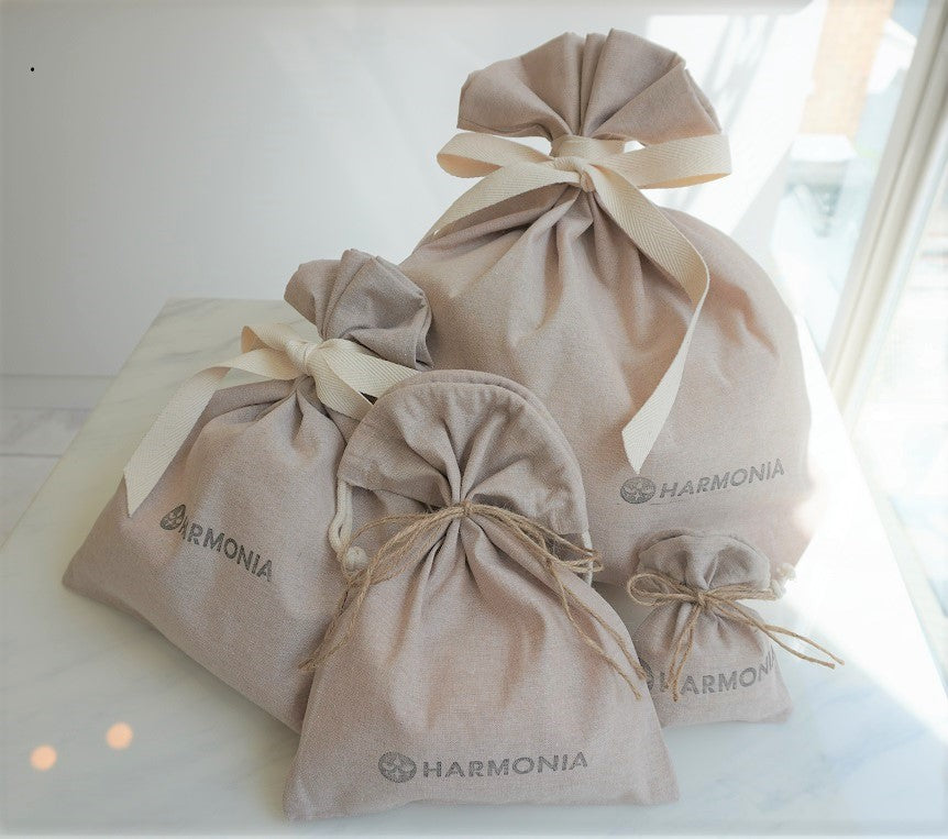 HARMONIAオリジナルロゴのスタンプを添えて、地球に優しいラッピングでお届けします。 -