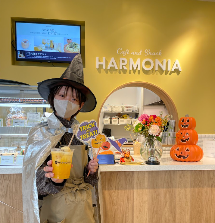 「Café and Snack HARMONIA」では、長崎を中心とした地方素材にこだわったメニューを提供、併設の「Presents beside HARMONIA」では、大切なひとへのギフトにぴったりなアイテムを取り扱っています。