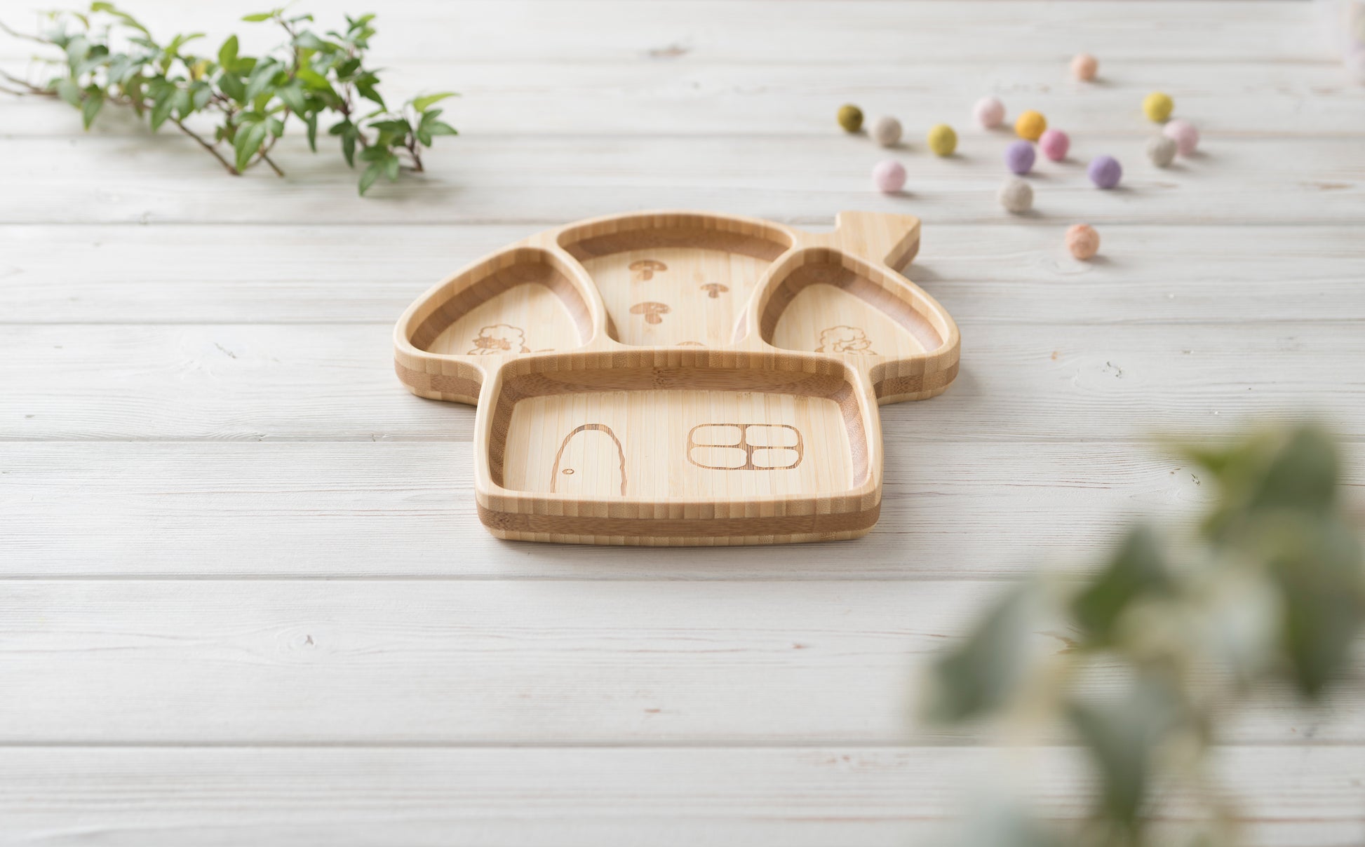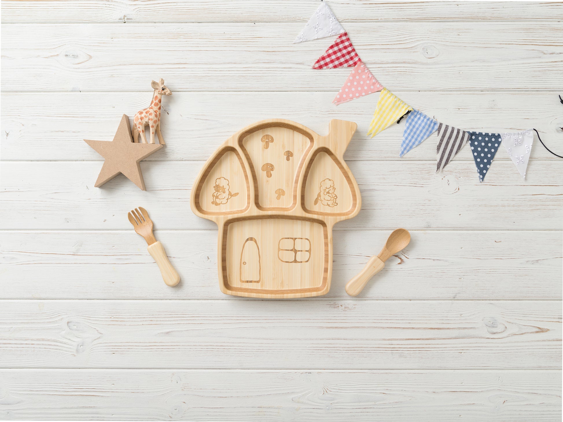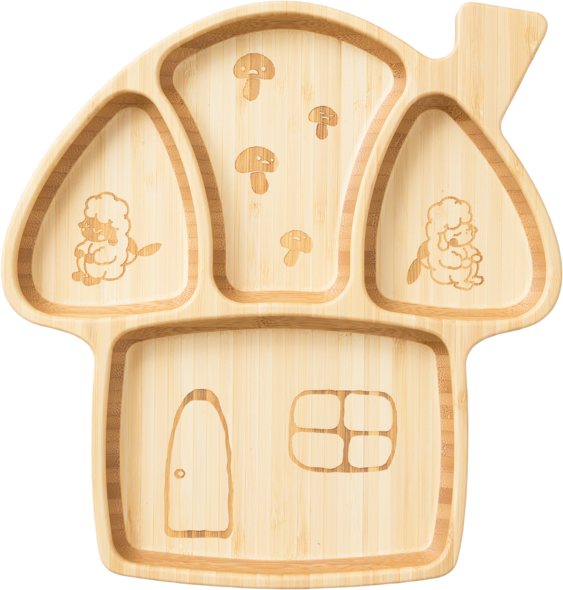 きのこのカタチのこびとのおうち。傘の部分にある3つのポケットにはおかずを入れるもよし、デザートを入れるもよし、ケチャップなどの調味料を入れるもよしで使い方いろいろ。やさしいぬくもりのナチュラル食器で、おうちでオシャレにカフェごはんを楽しめます。