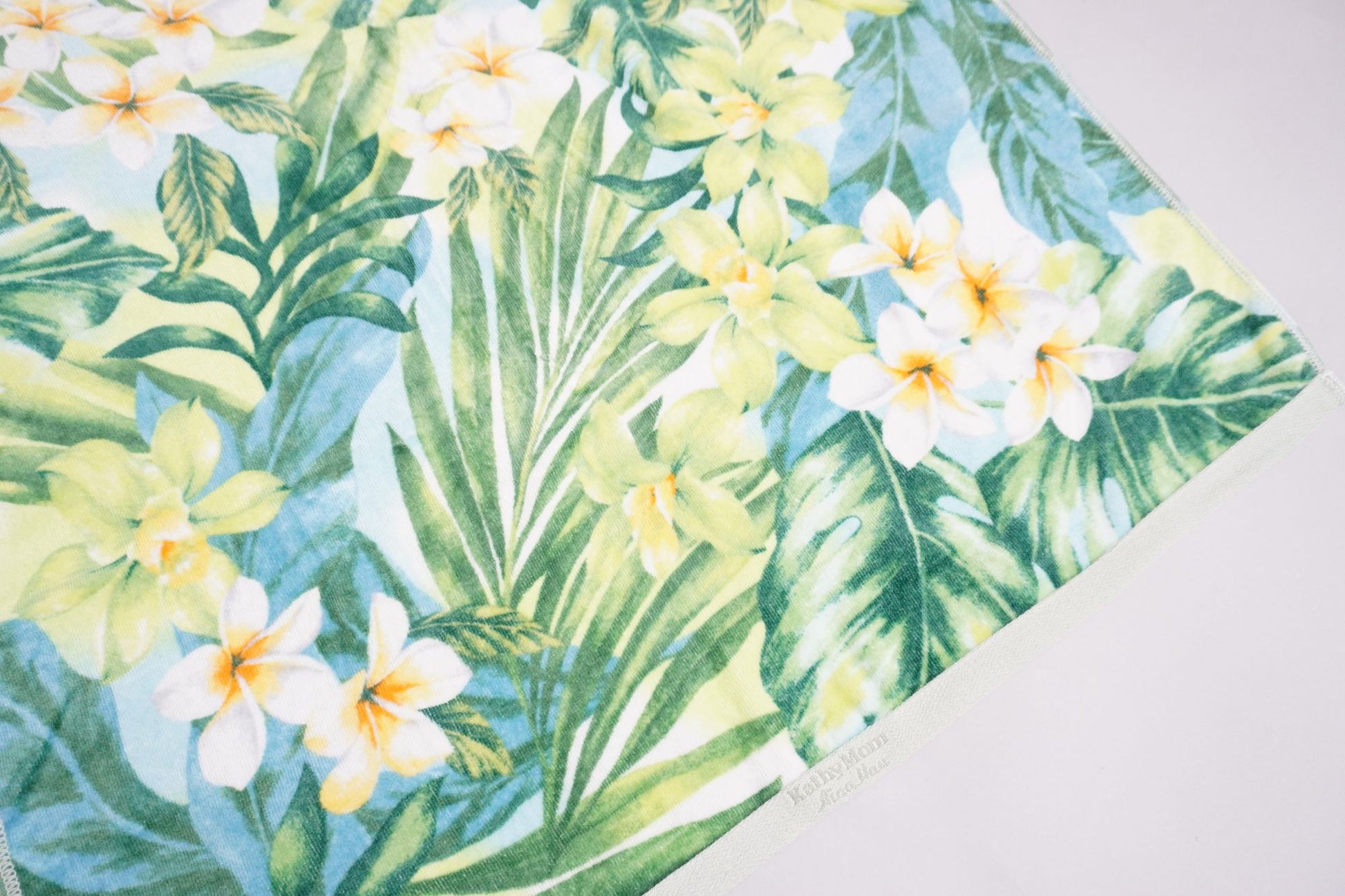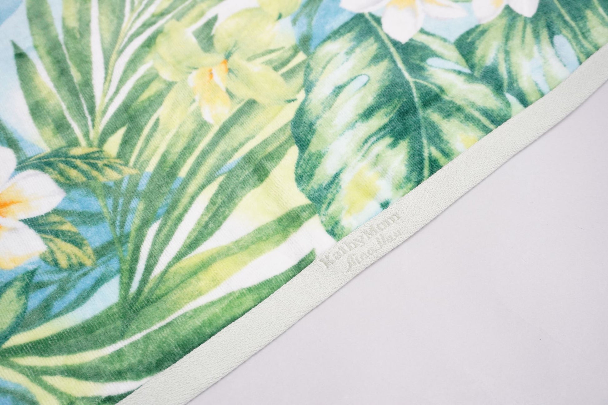 はっきりとしたカラーリングに瑞々しいハワイの植物たちが描かれており、持っているだけでハワイを感じられる1枚になっています。