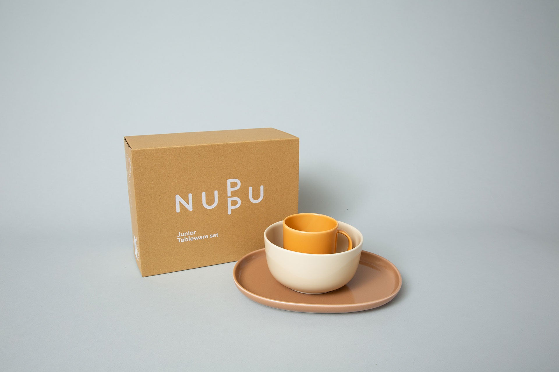 3歳以上の子ども向けテーブルウェア「NUPPU JUNIOR」。食事の時間は、子どもたちがさまざまな食材や味を通じて世界と繋がる機会だけに、テーブルウェアにもこだわりを。波佐見焼のプレート、ボウル、マグのセットはスタッキングの美しさや、料理やシーンを限定しない多機能性を備えています。4種のカラフルなラインアップからお選びいただけます。