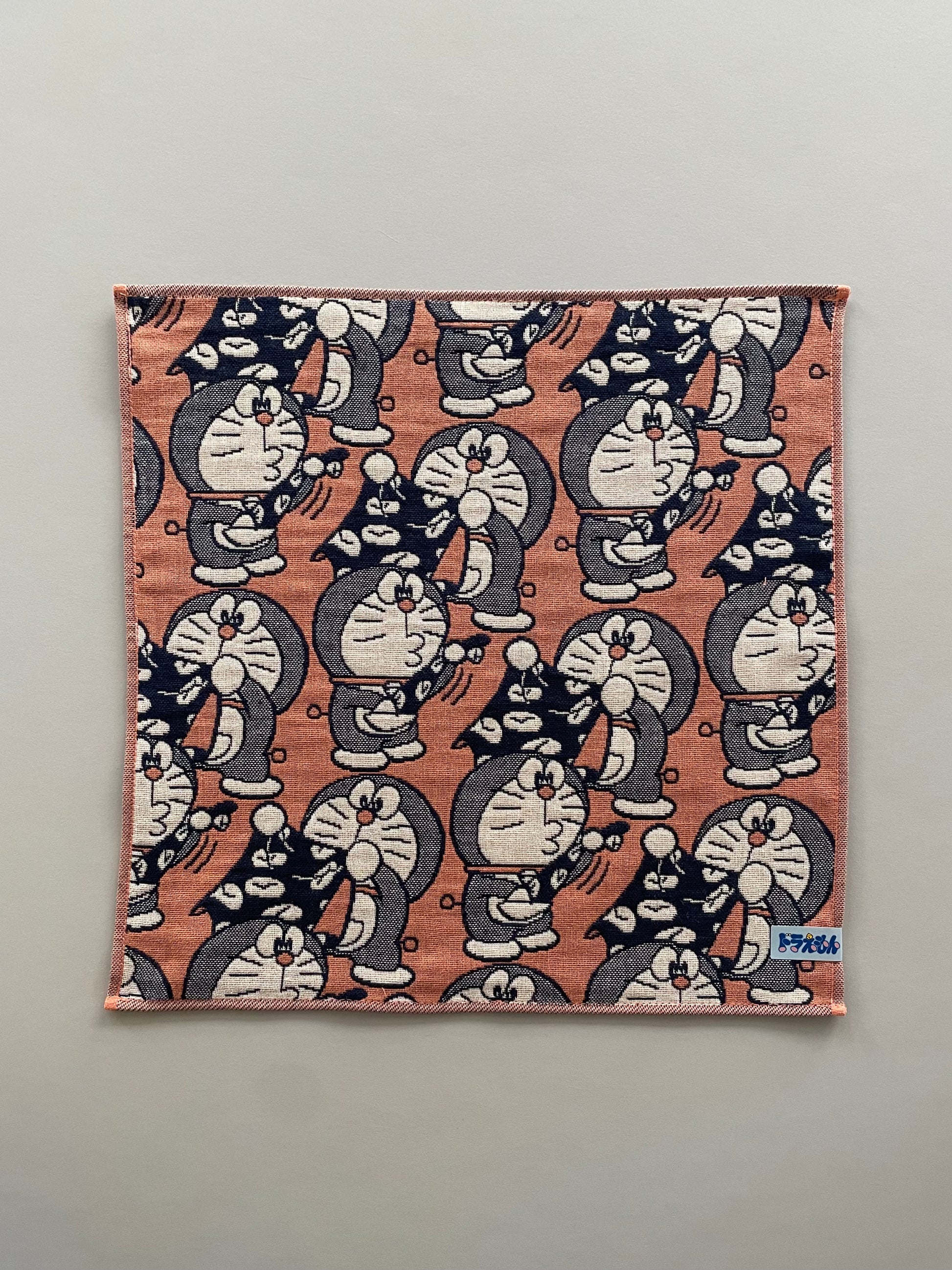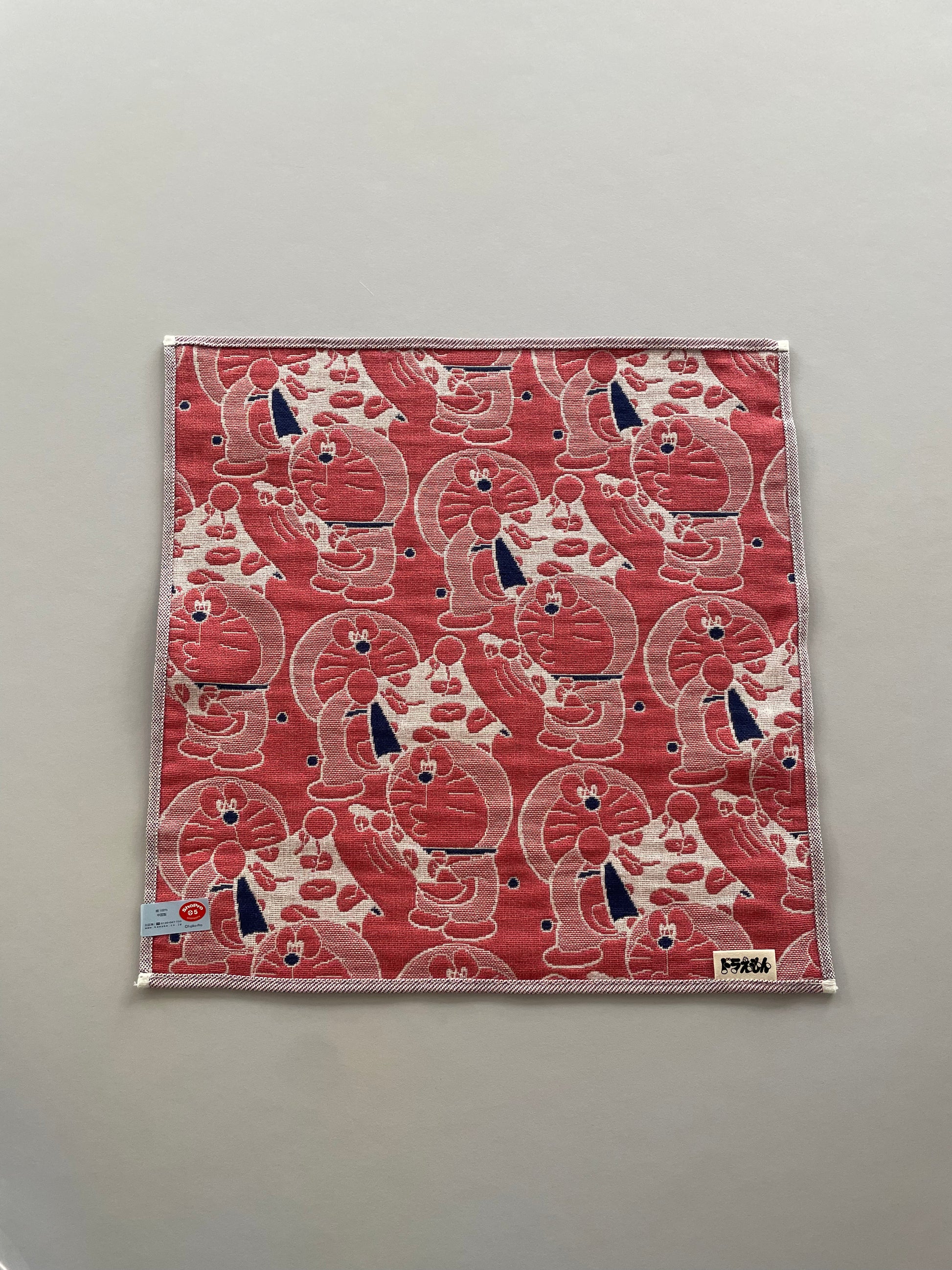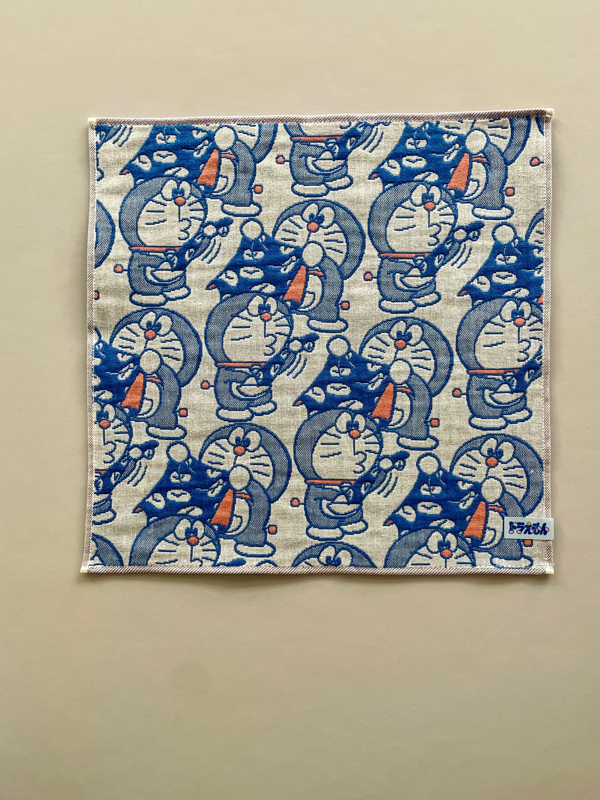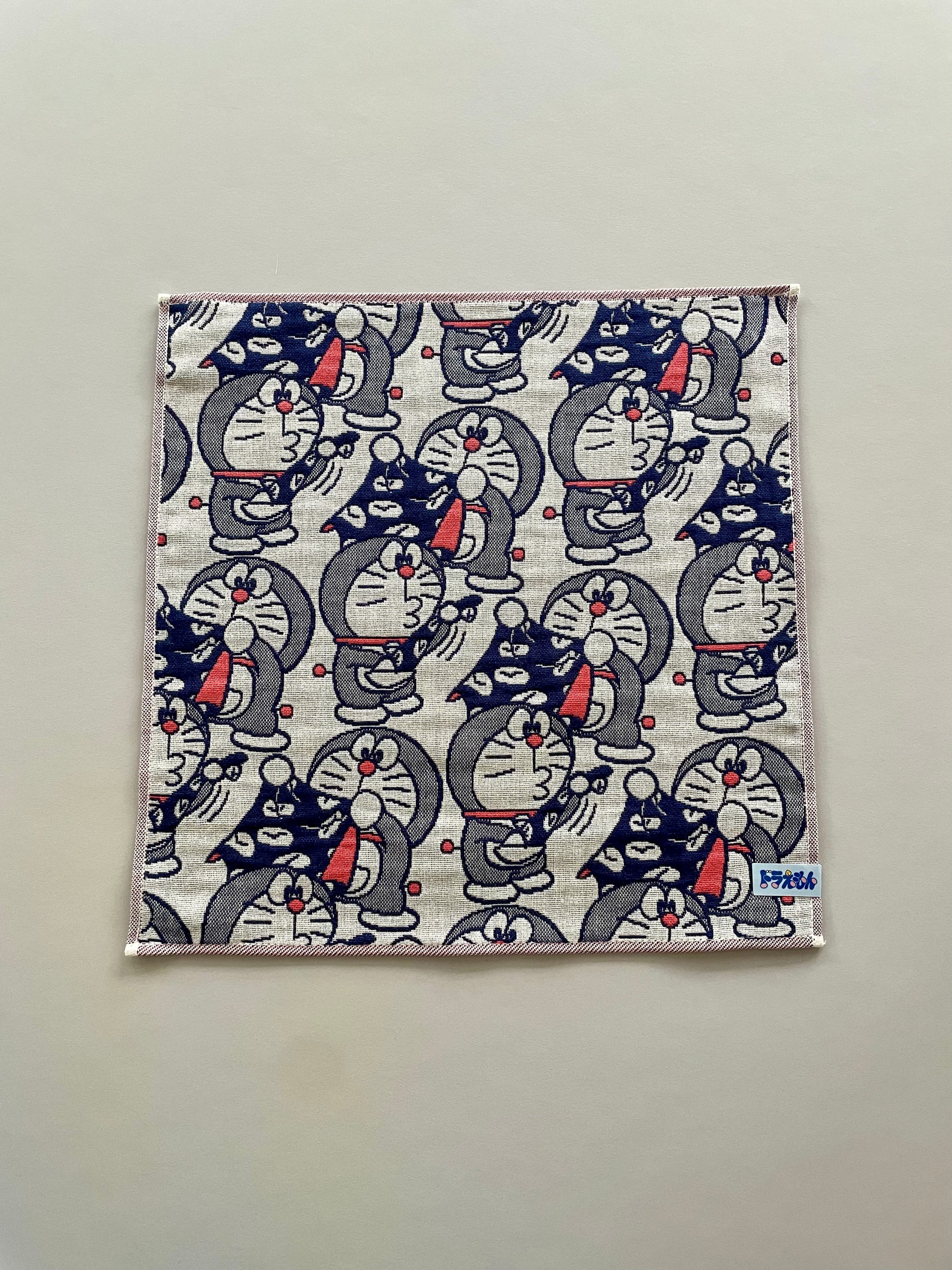 タイムふろしきを今にも使わんとするドラえもんがとてもキュート!大きめで使い勝手の良いガーゼハンカチです。