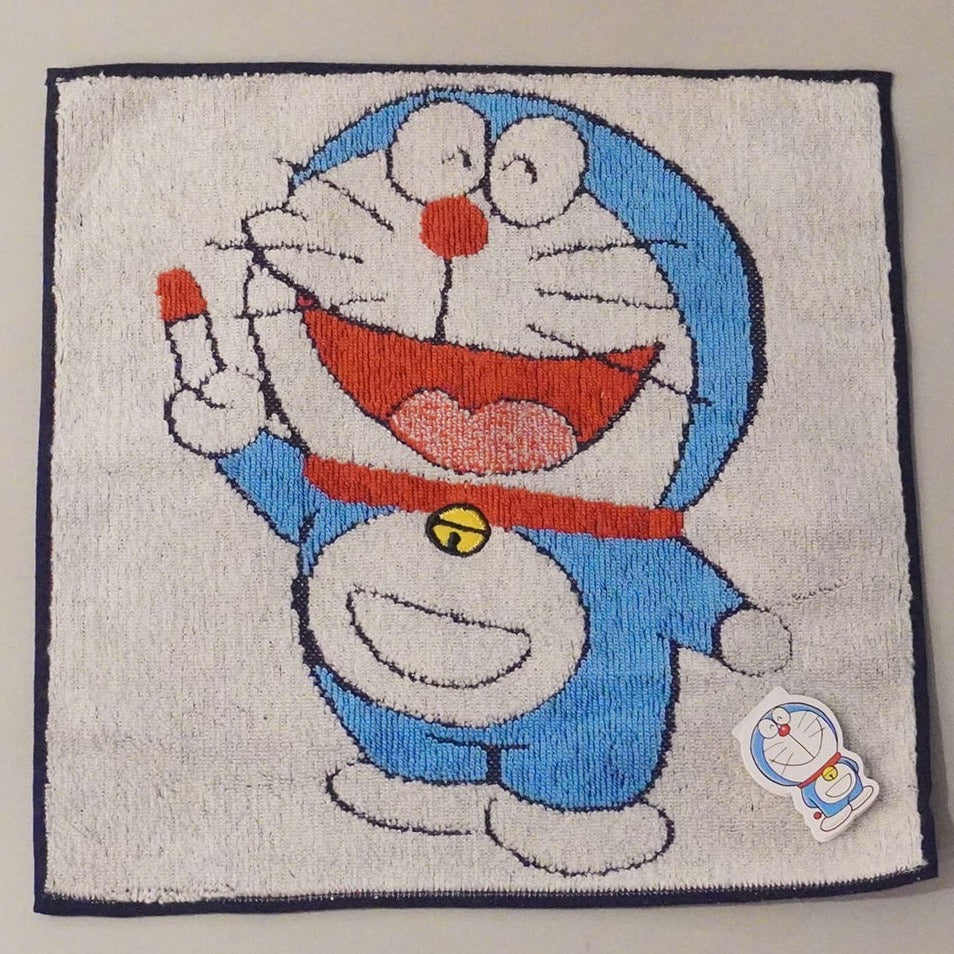 空気クレヨンを持っているドラえもんの表情が可愛い、タオルハンカチです。ご自宅用はもちろんギフトやお土産として贈るのもおすすめのアイテムです。