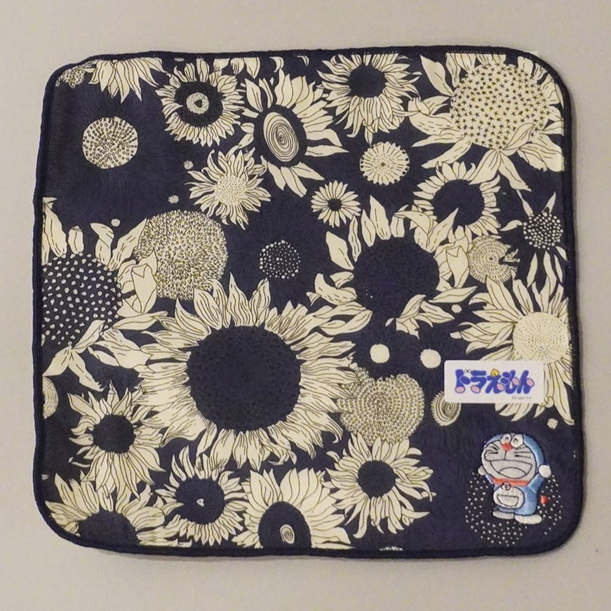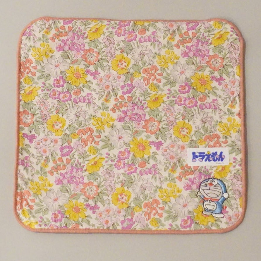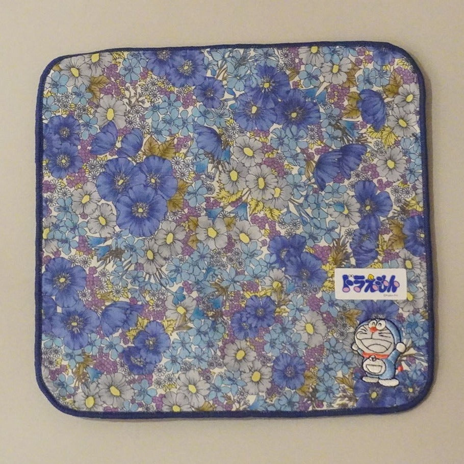 シックな印象のリバティファブリックにドラえもんのキュートなワンポイント刺繍をあしらったタオルハンカチです。ミニサイズなので、小さめなバッグやトートバッグでの持ち運びにも最適なアイテムです。