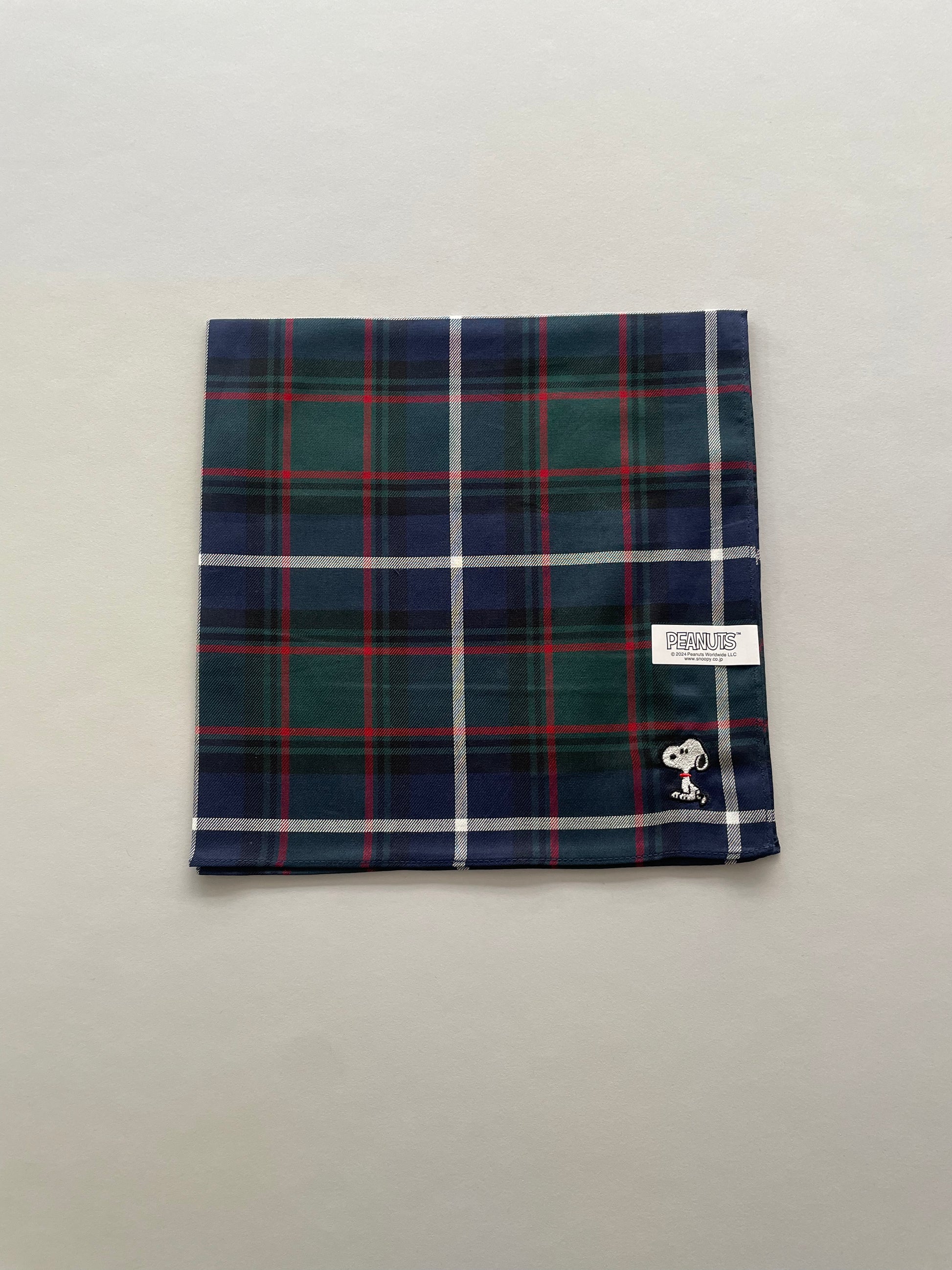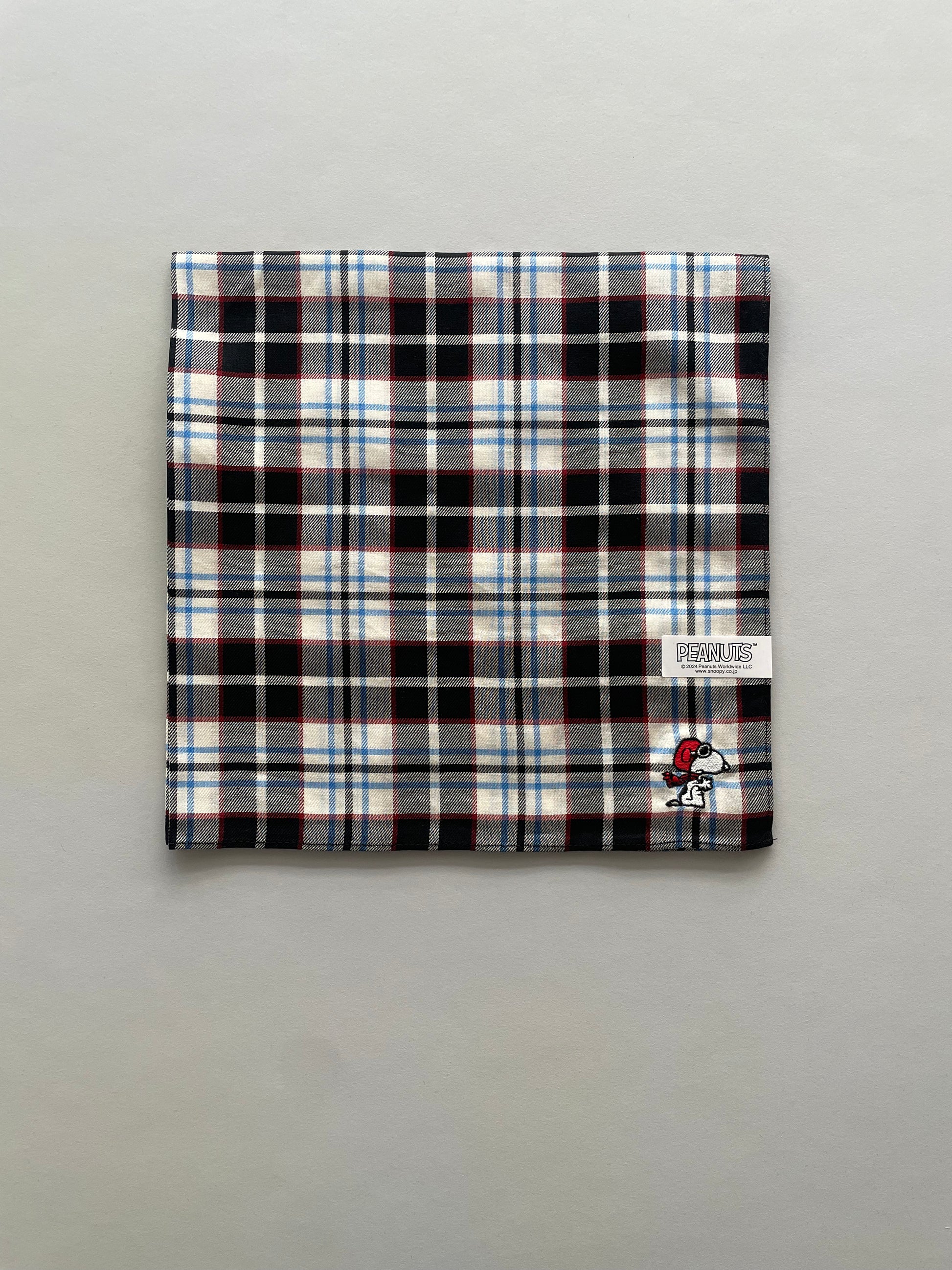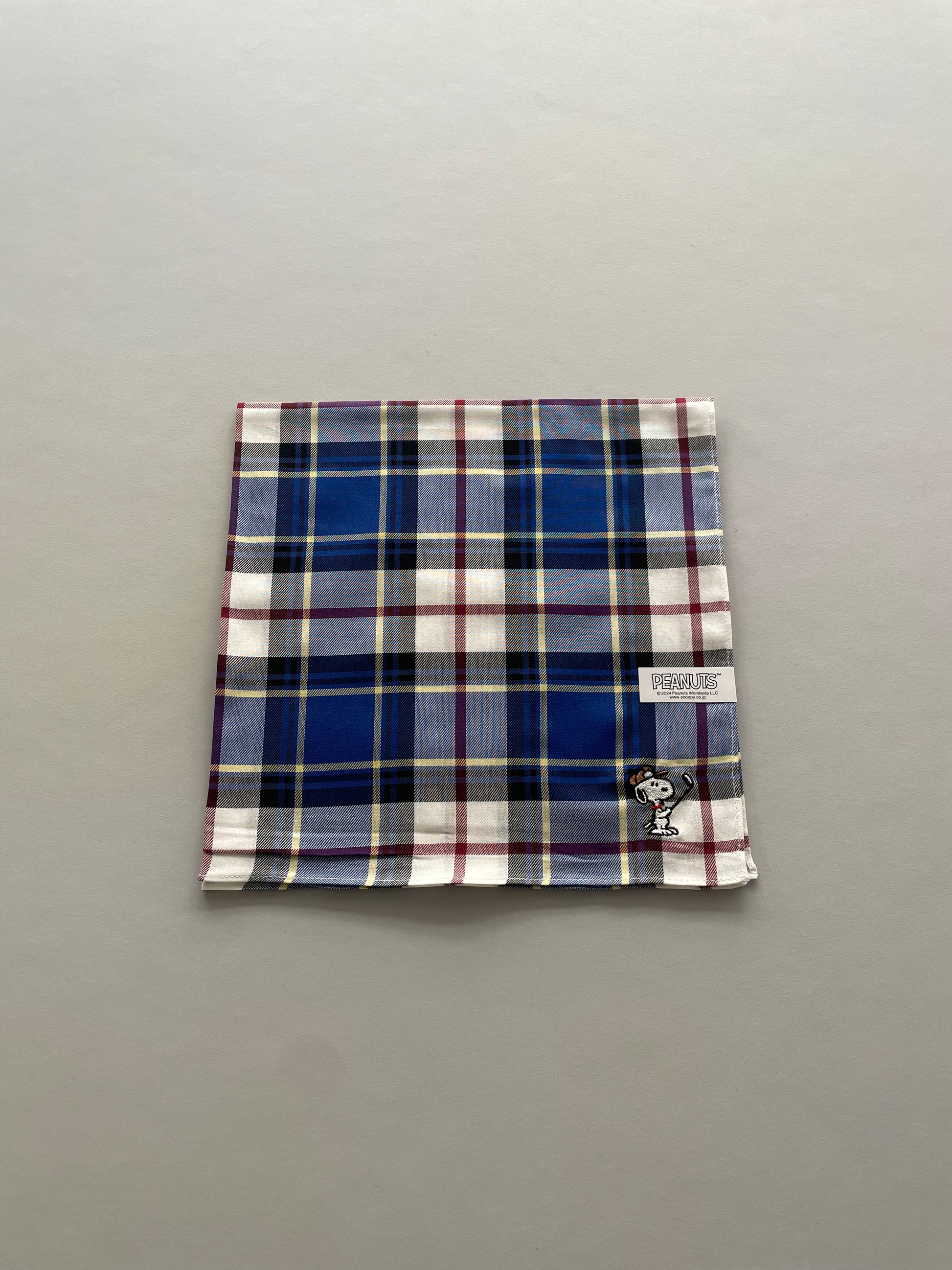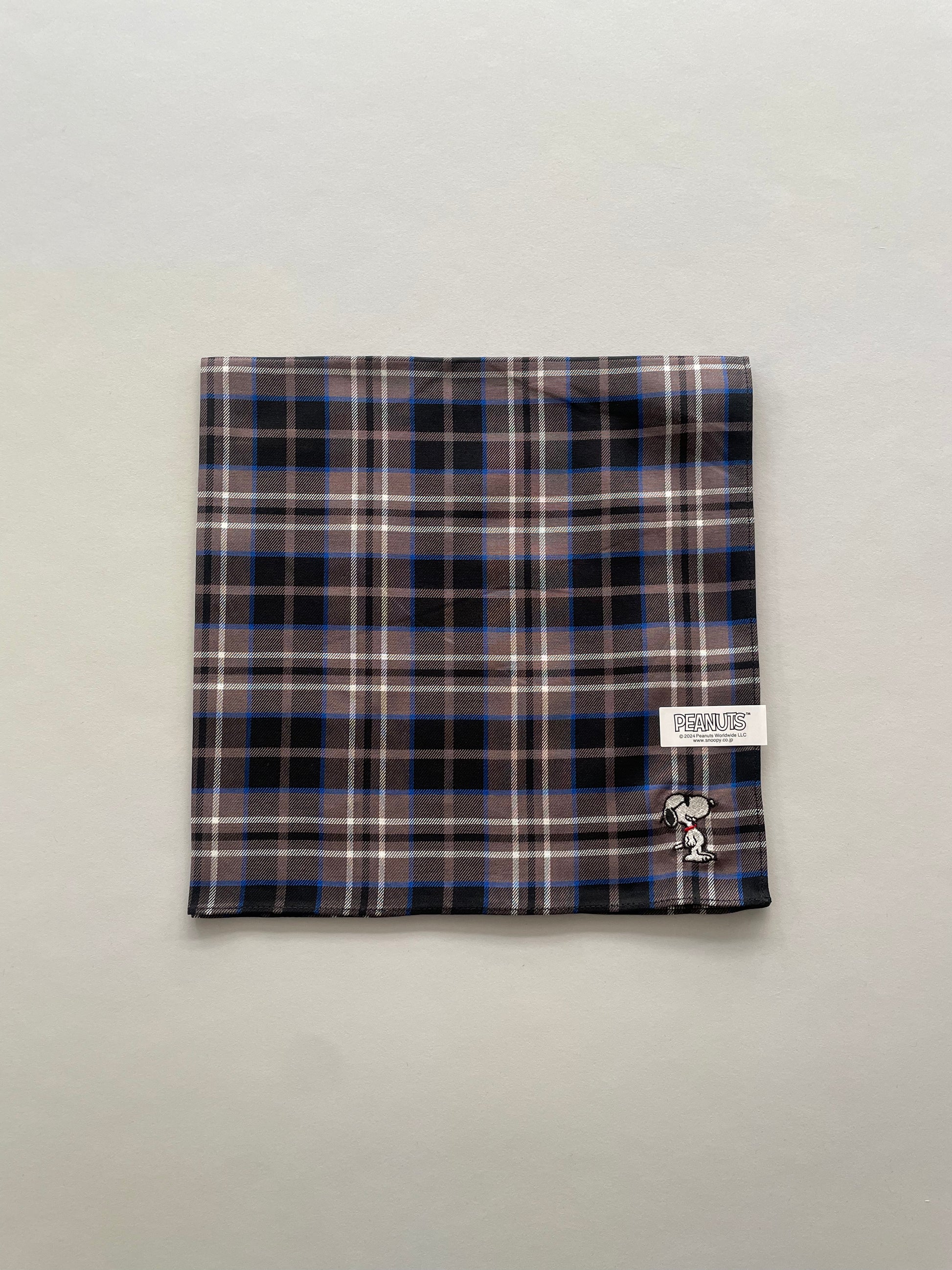 落ち着いたカラー展開のチェック柄ハンカチは、刺繍のスヌーピーがワンポイント。年齢・性別問わず使い勝手の良いアイテムです。