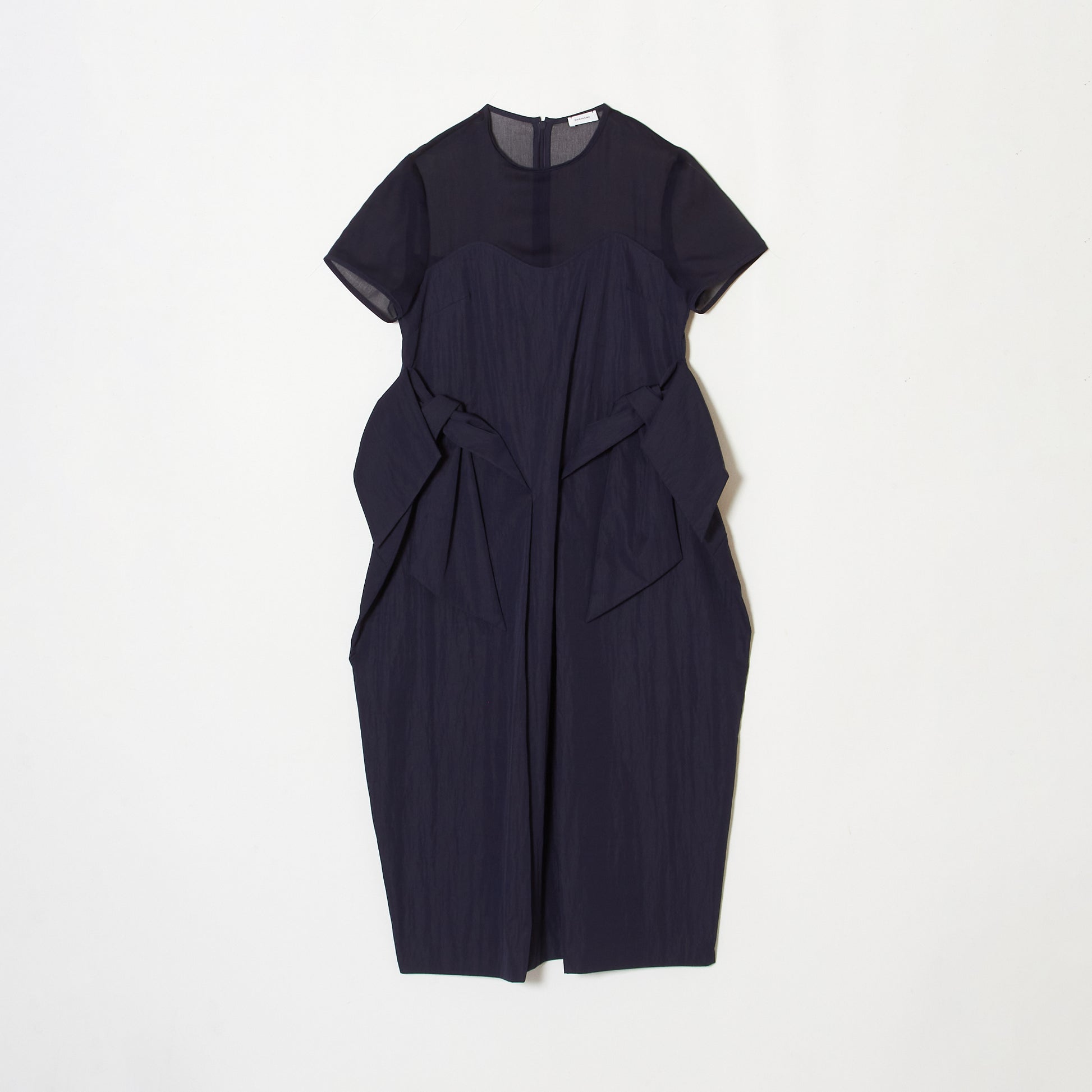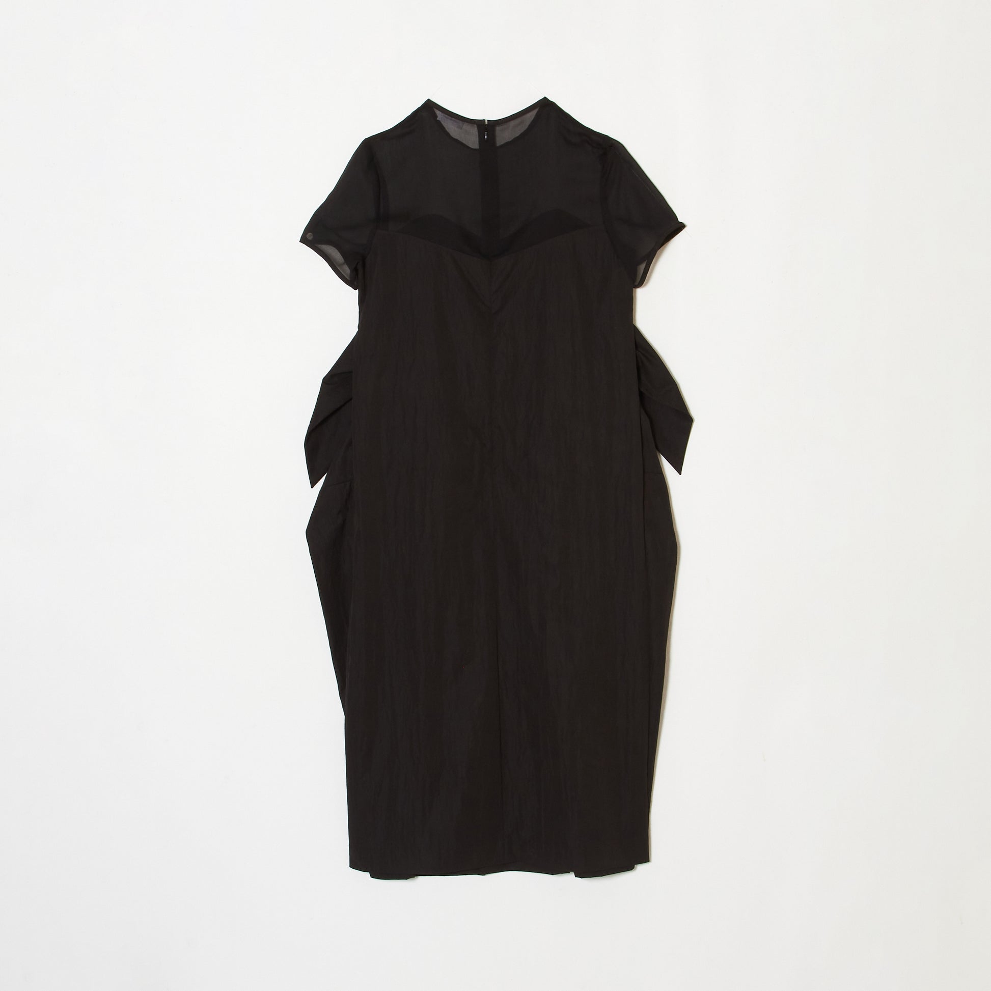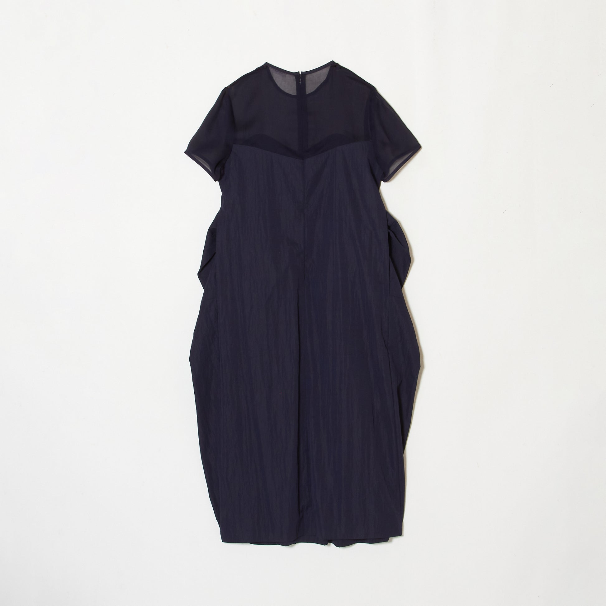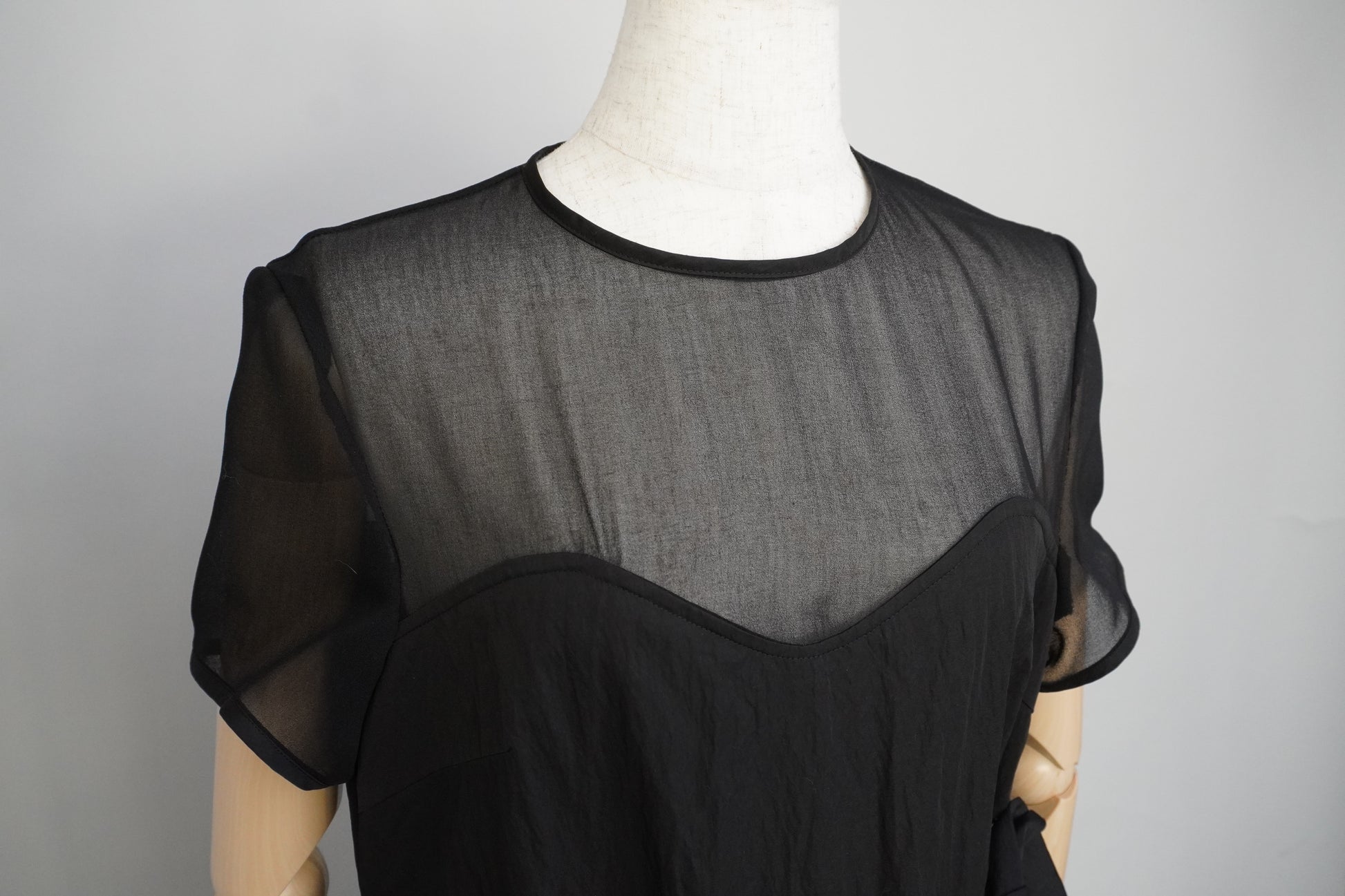 TOPに透け感のあるシフォン素材を取り入れた、切り替えワンピース。