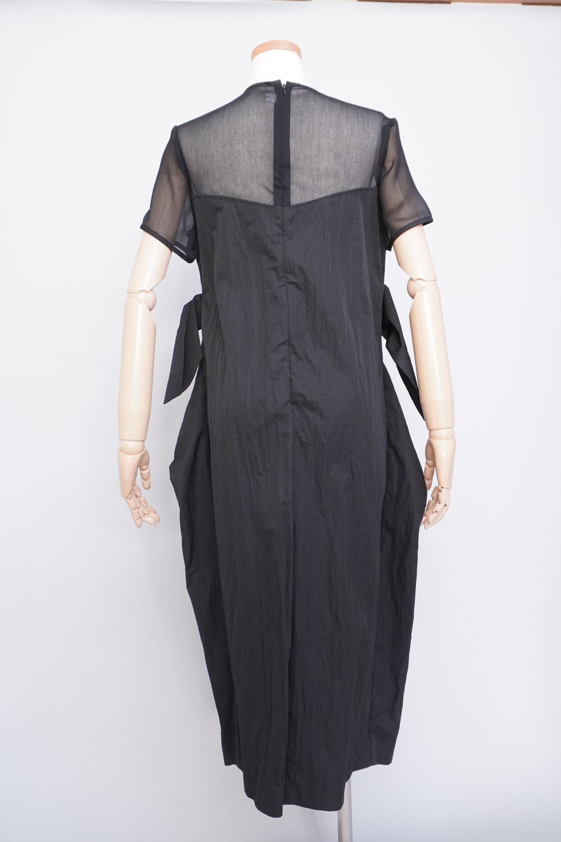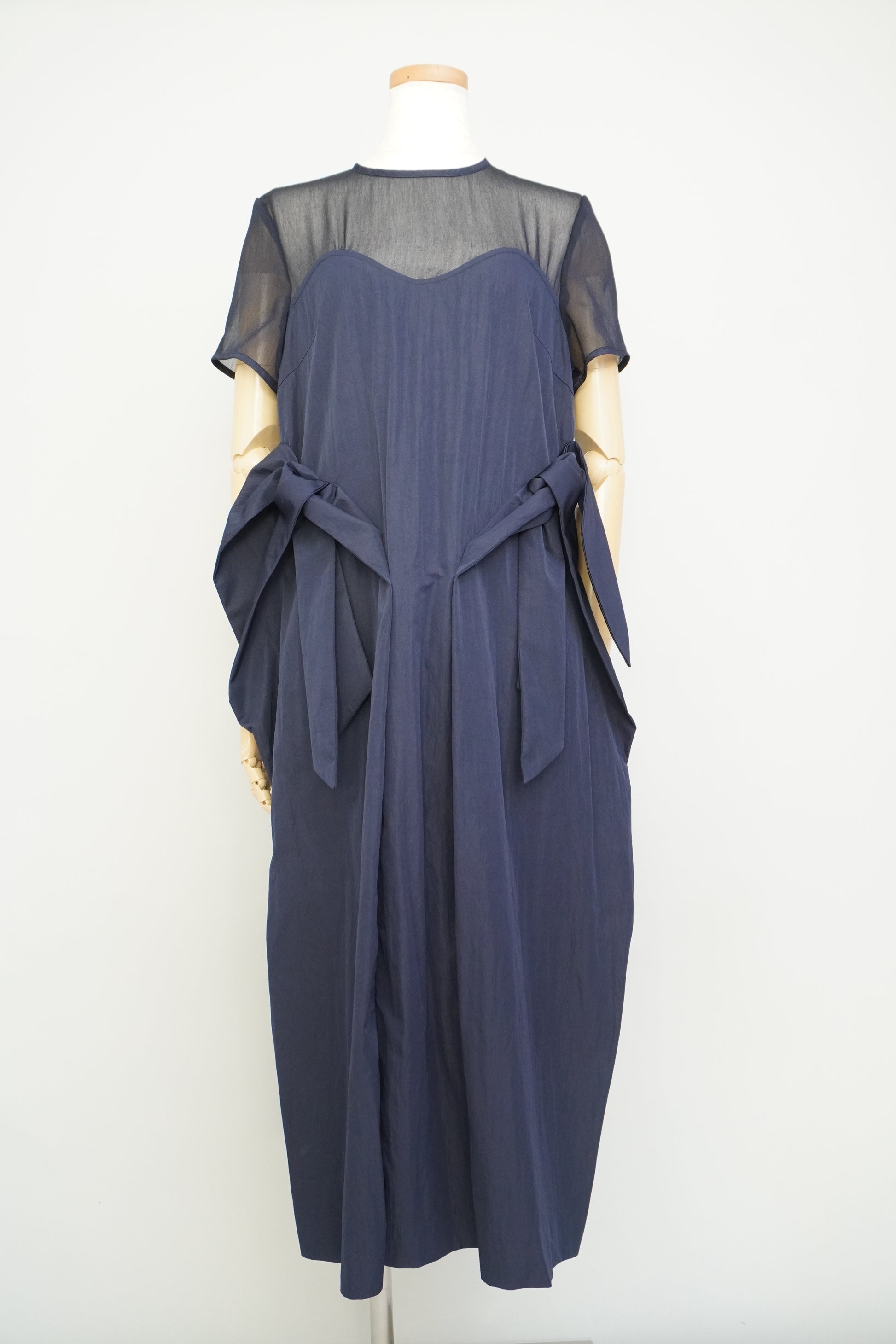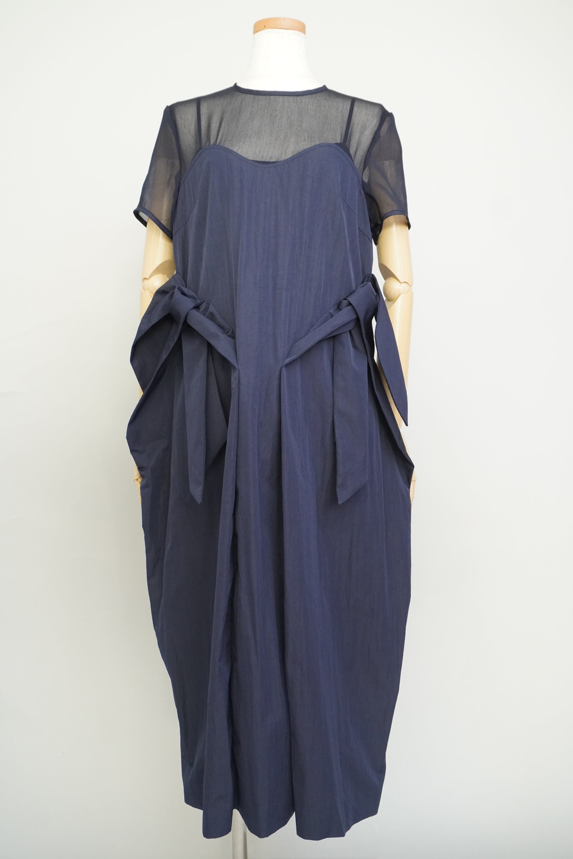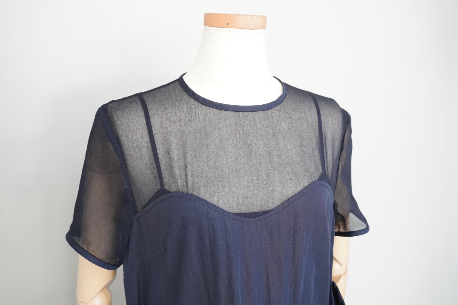 TOPに透け感のあるシフォン素材を取り入れた、切り替えワンピース。