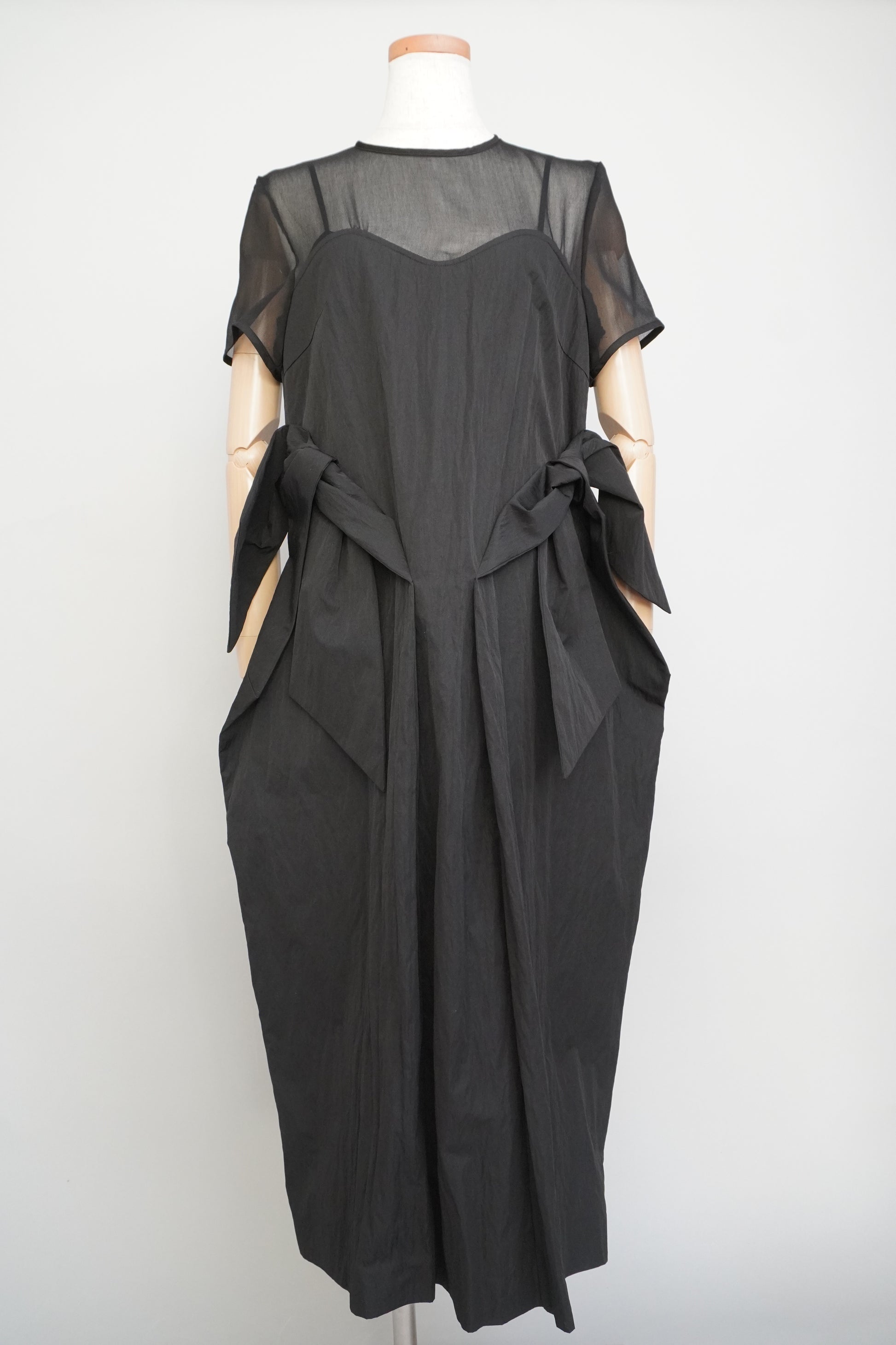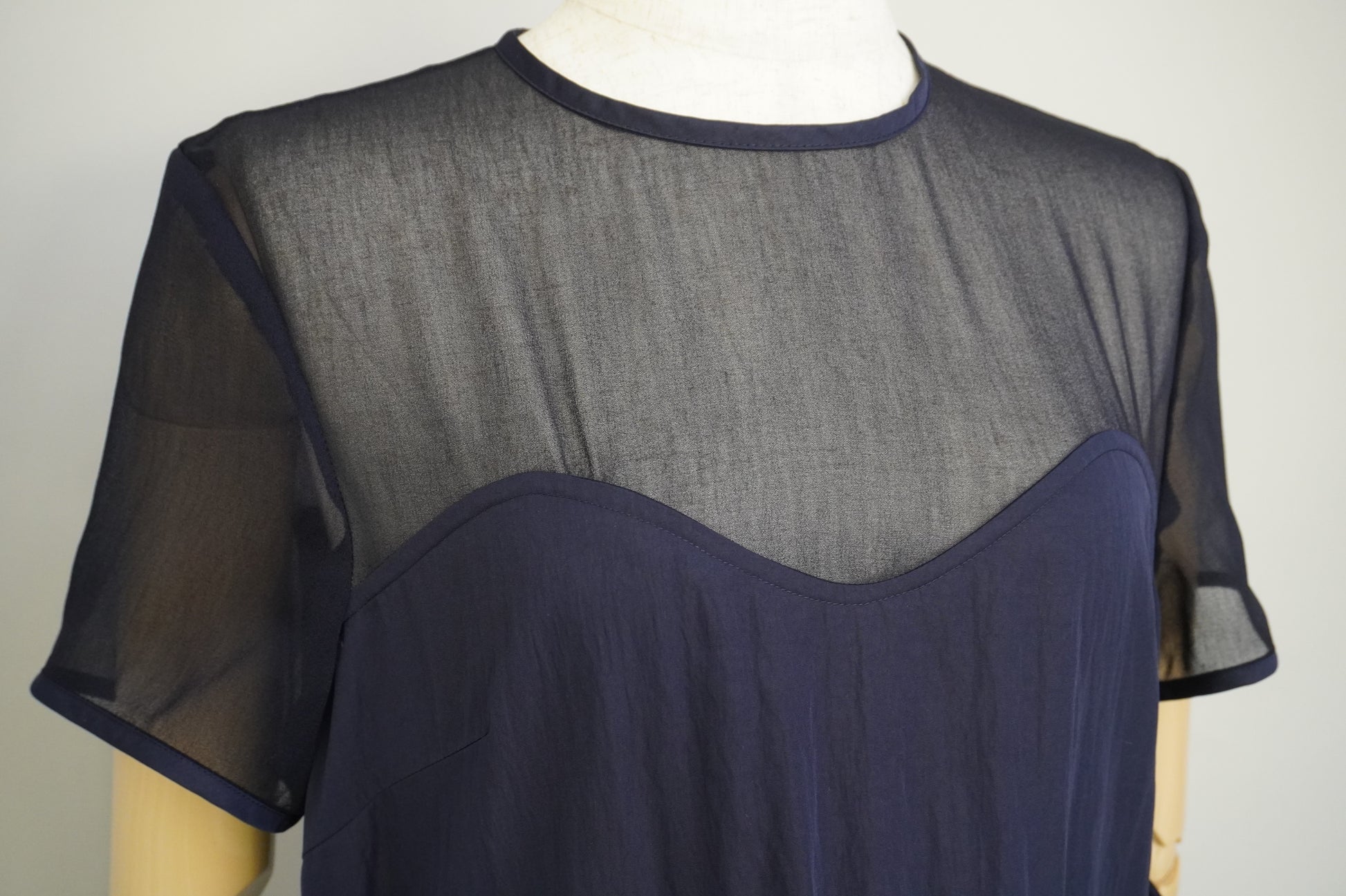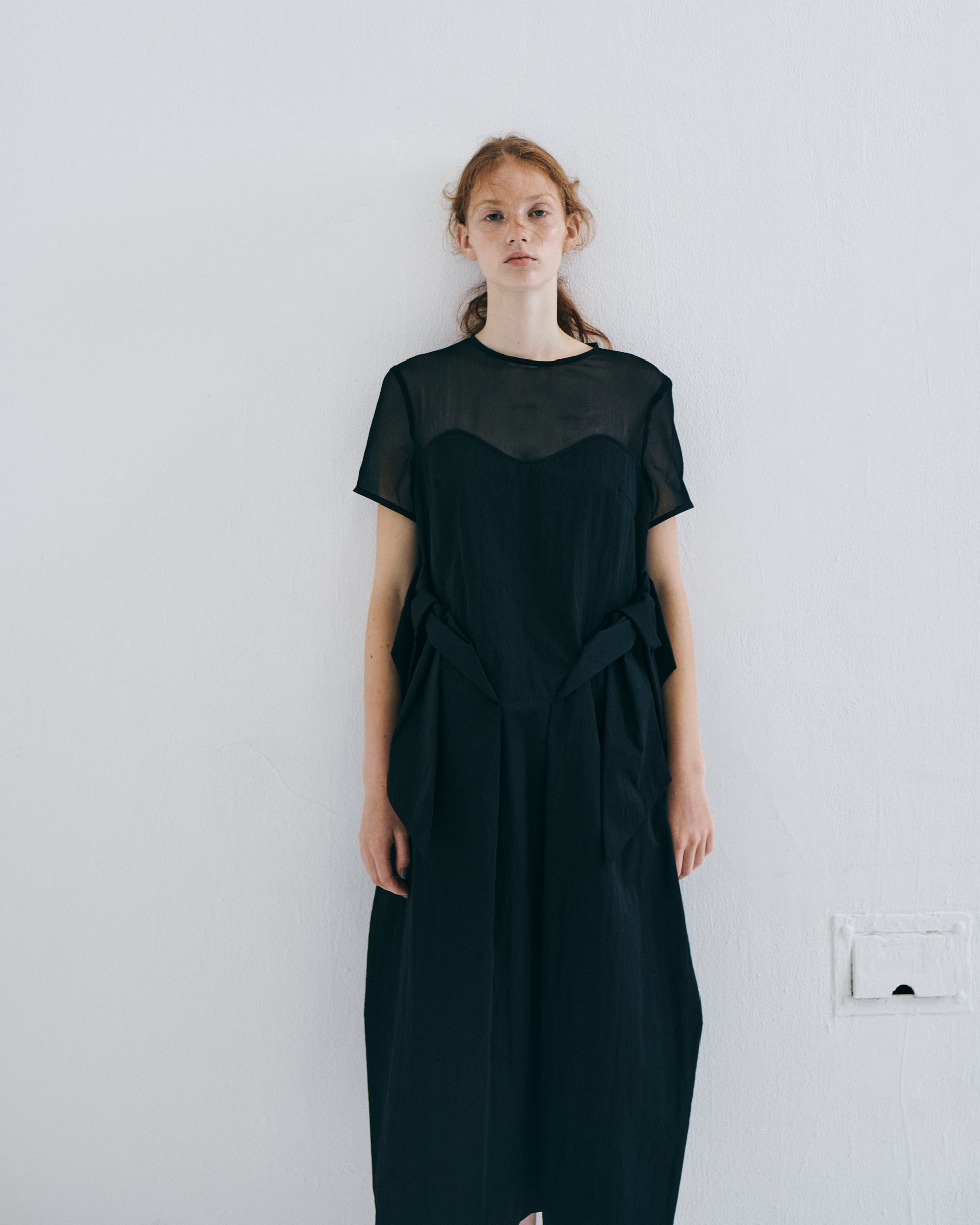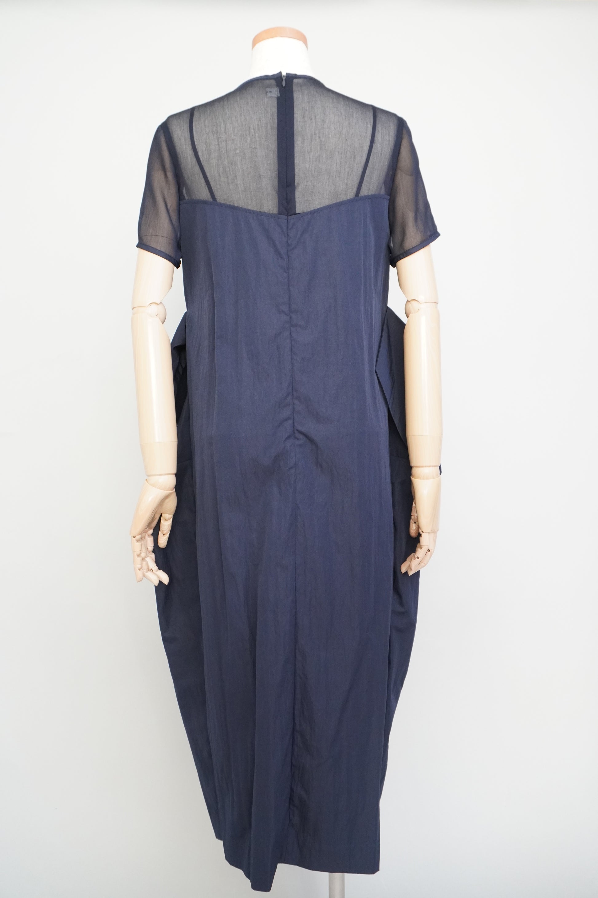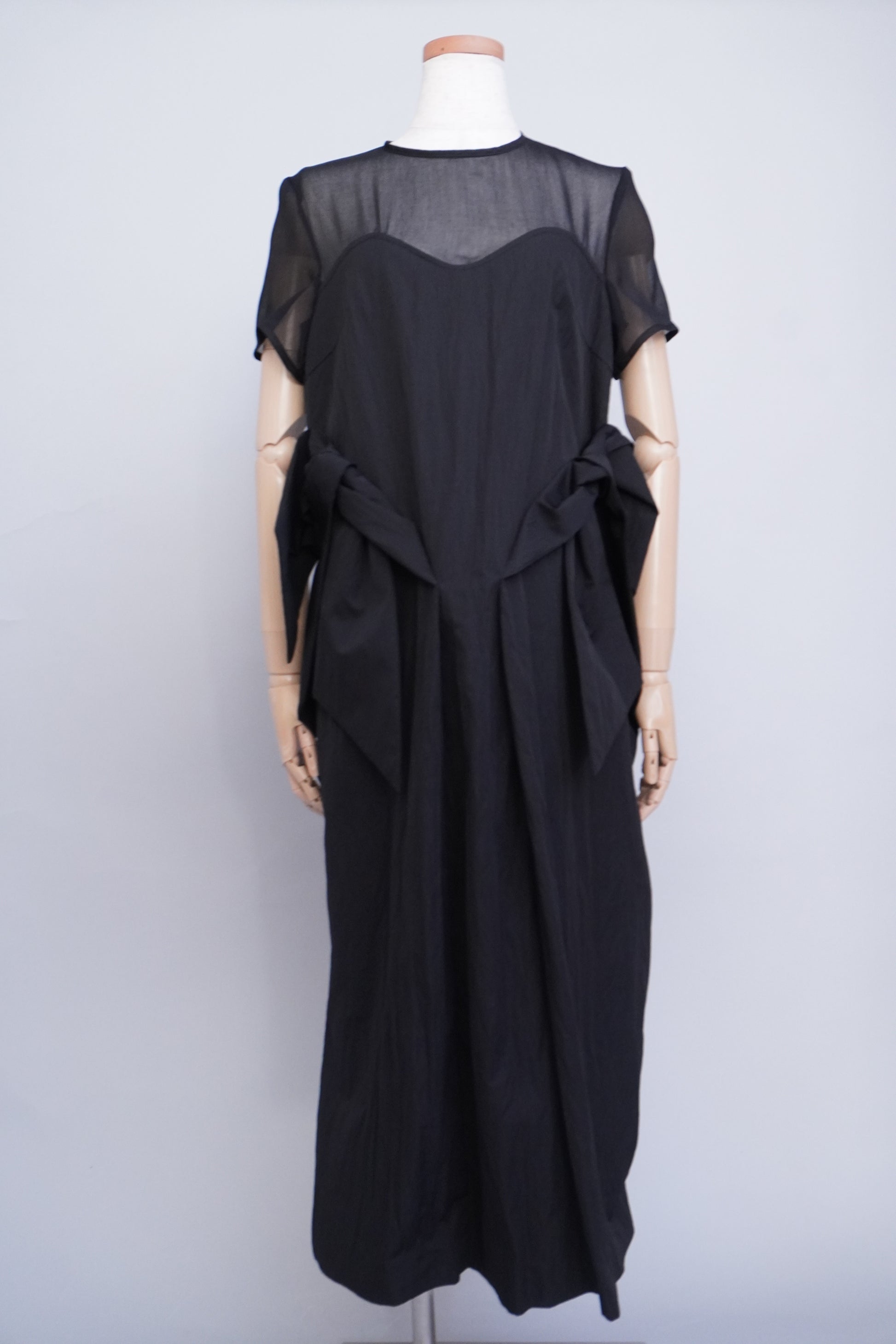 TOPに透け感のあるシフォン素材を取り入れた、切り替えワンピース。
