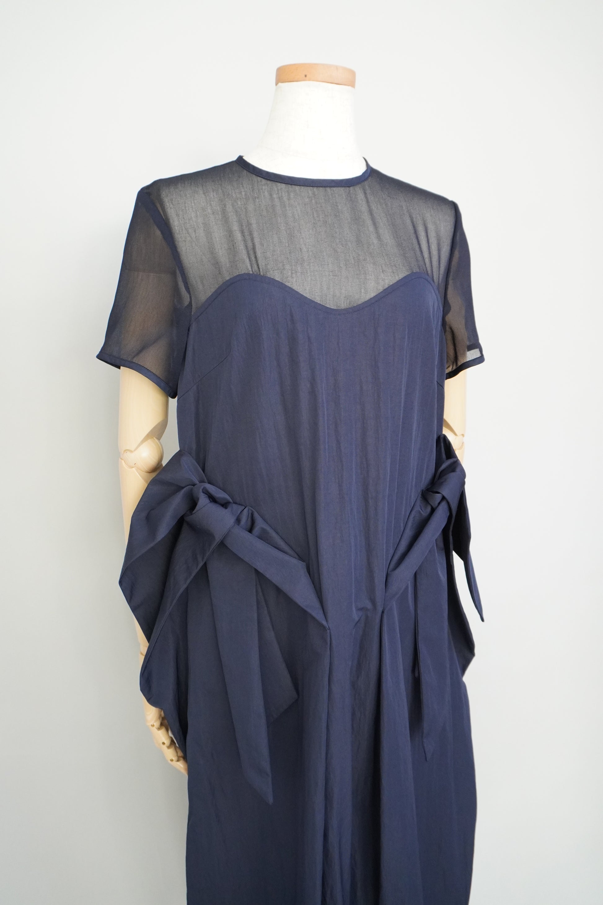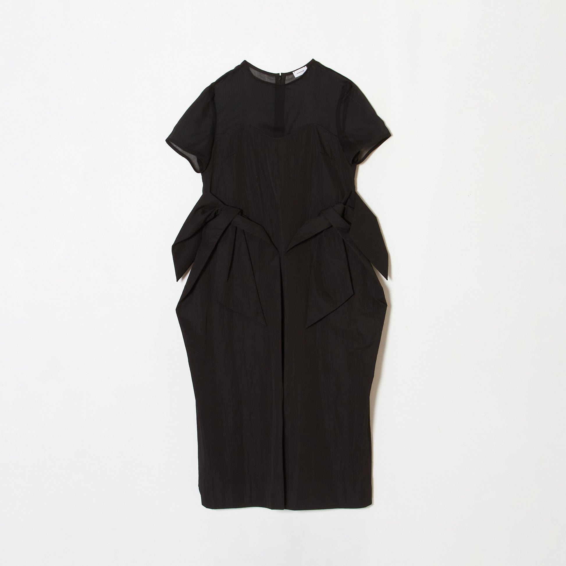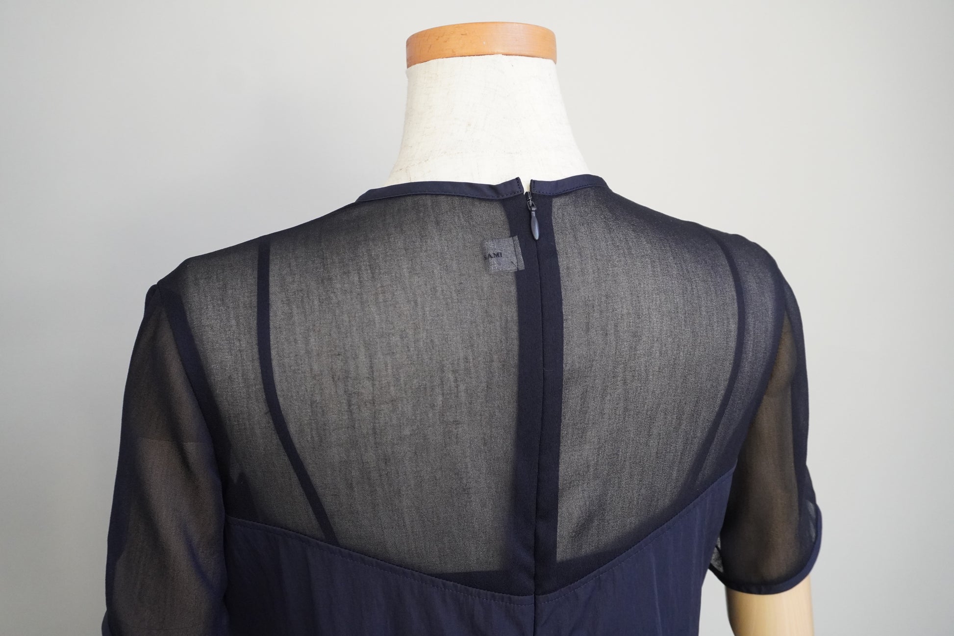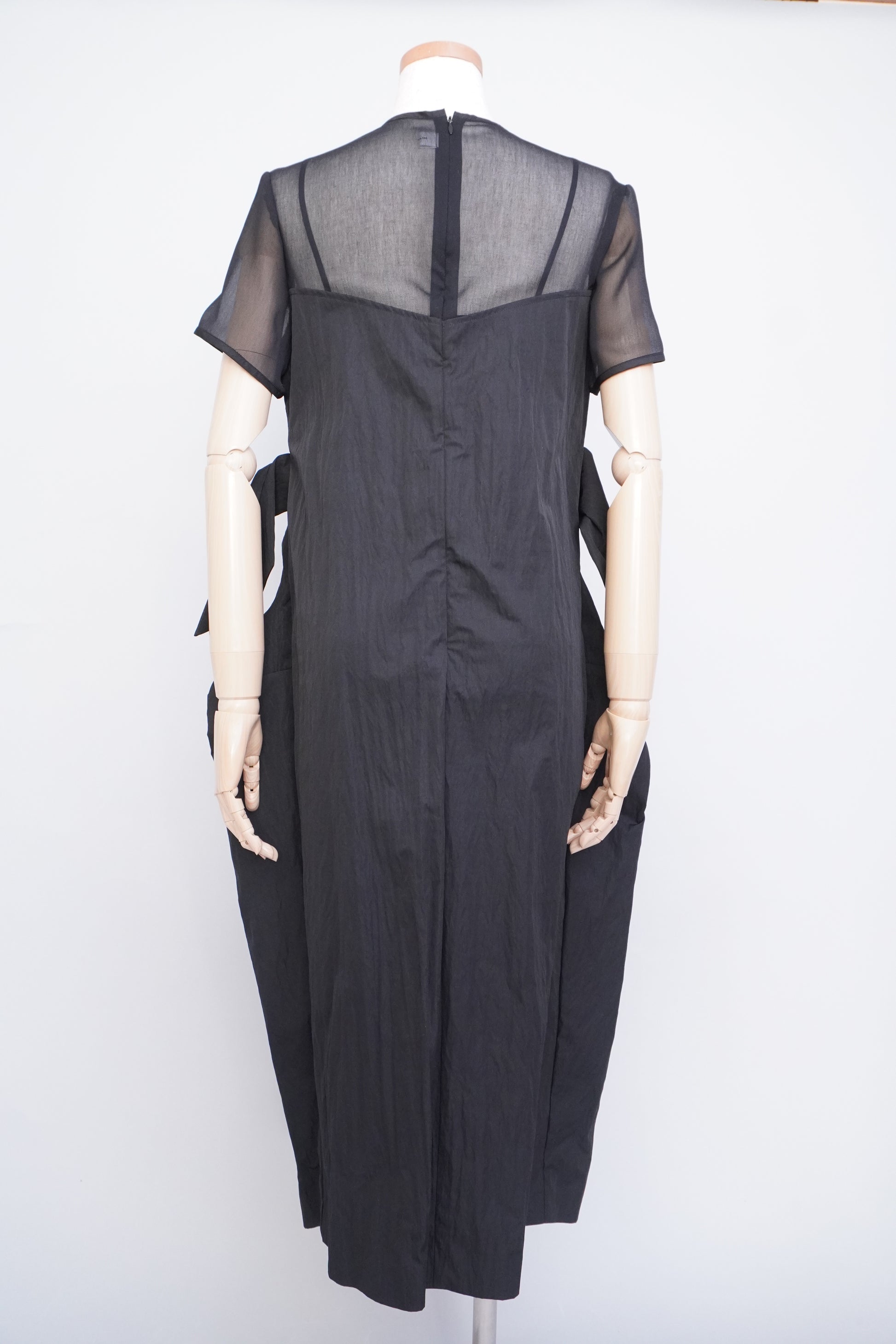 TOPに透け感のあるシフォン素材を取り入れた、切り替えワンピース。