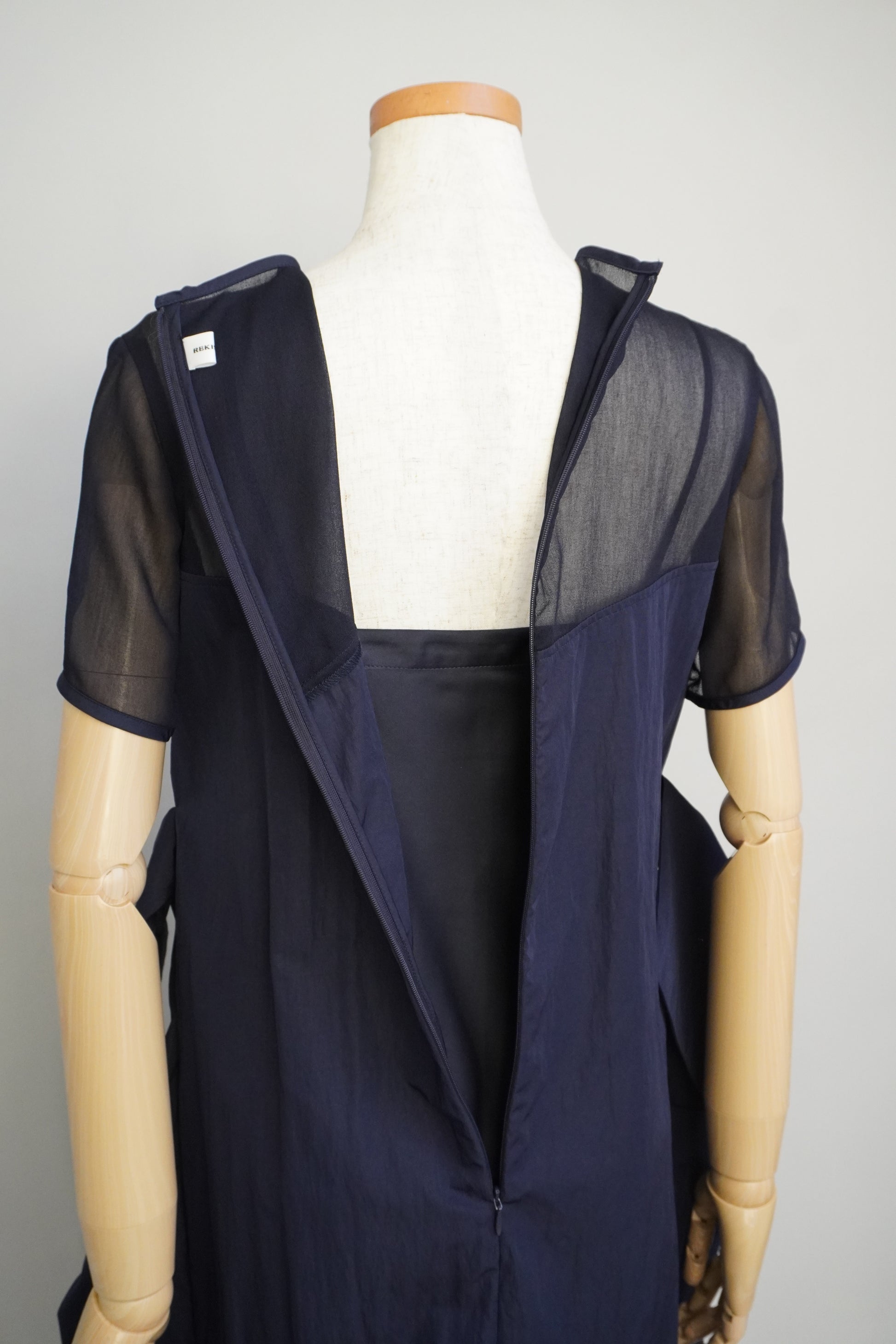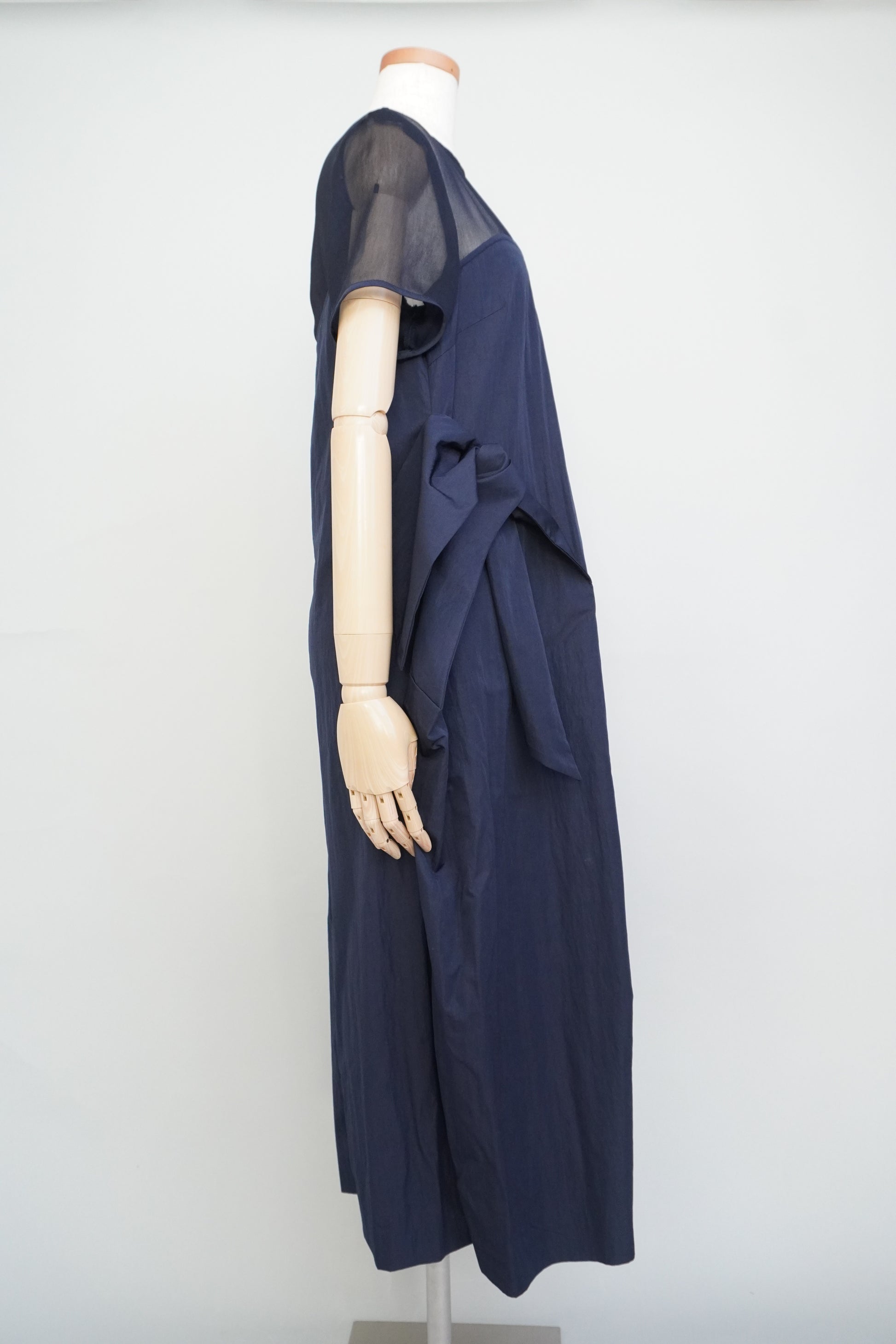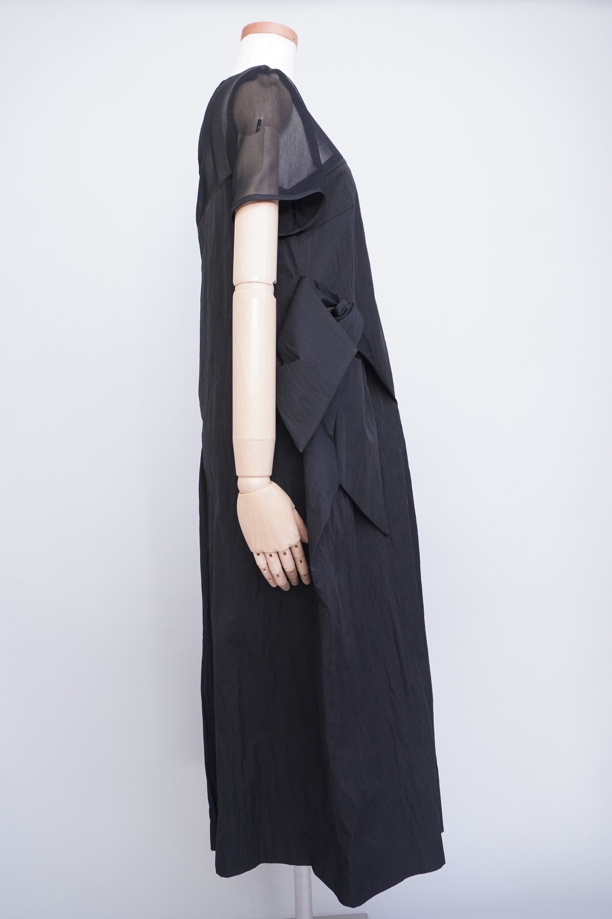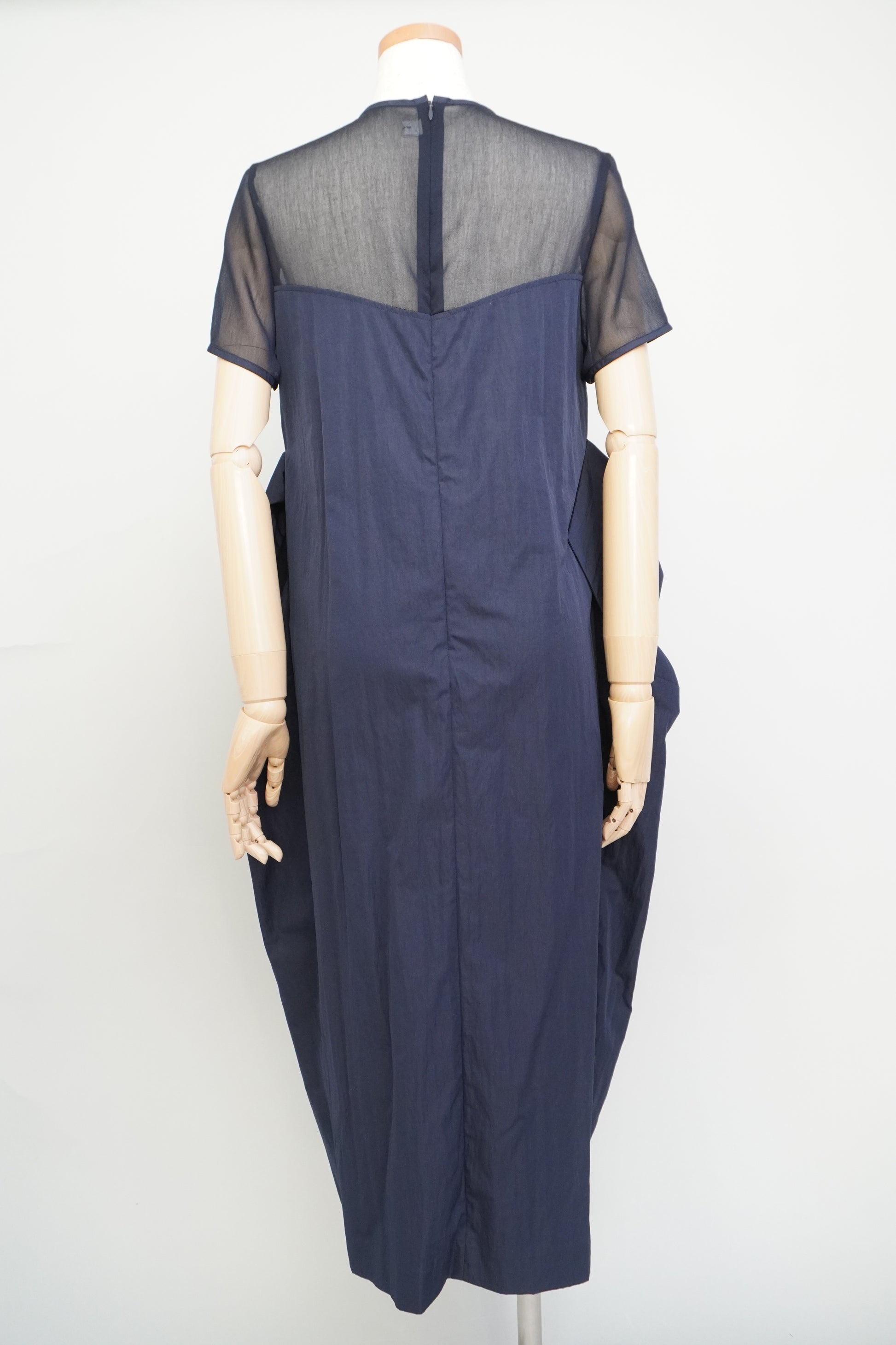 TOPに透け感のあるシフォン素材を取り入れた、切り替えワンピース。