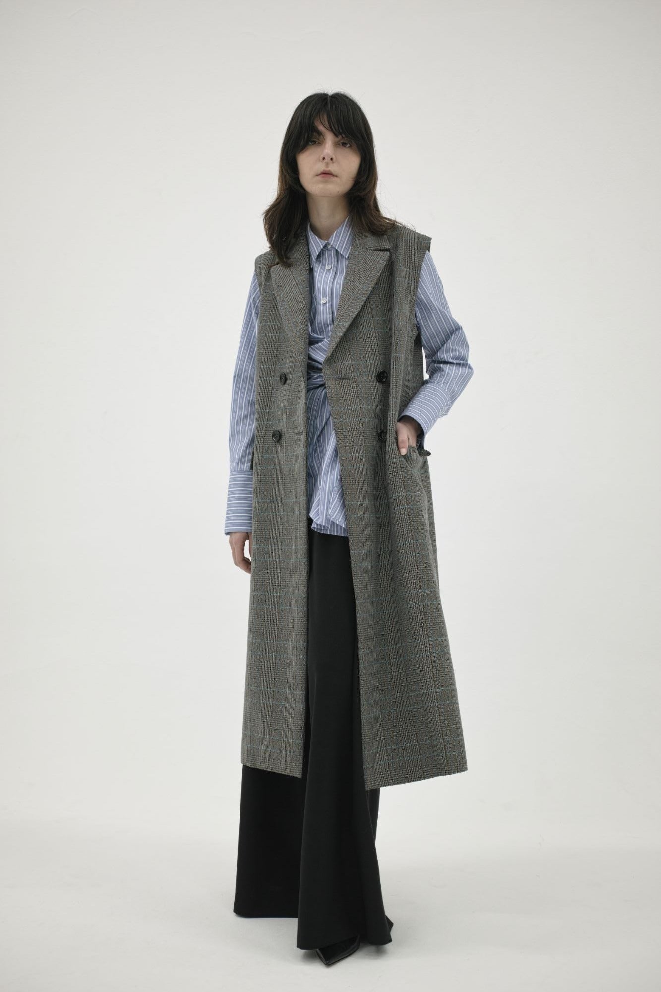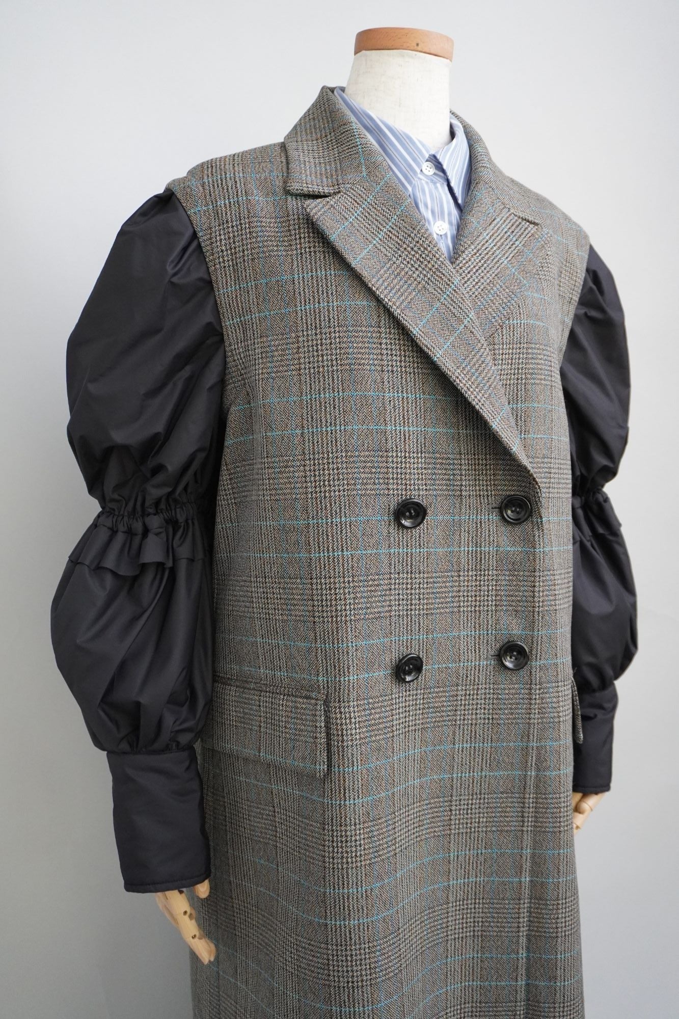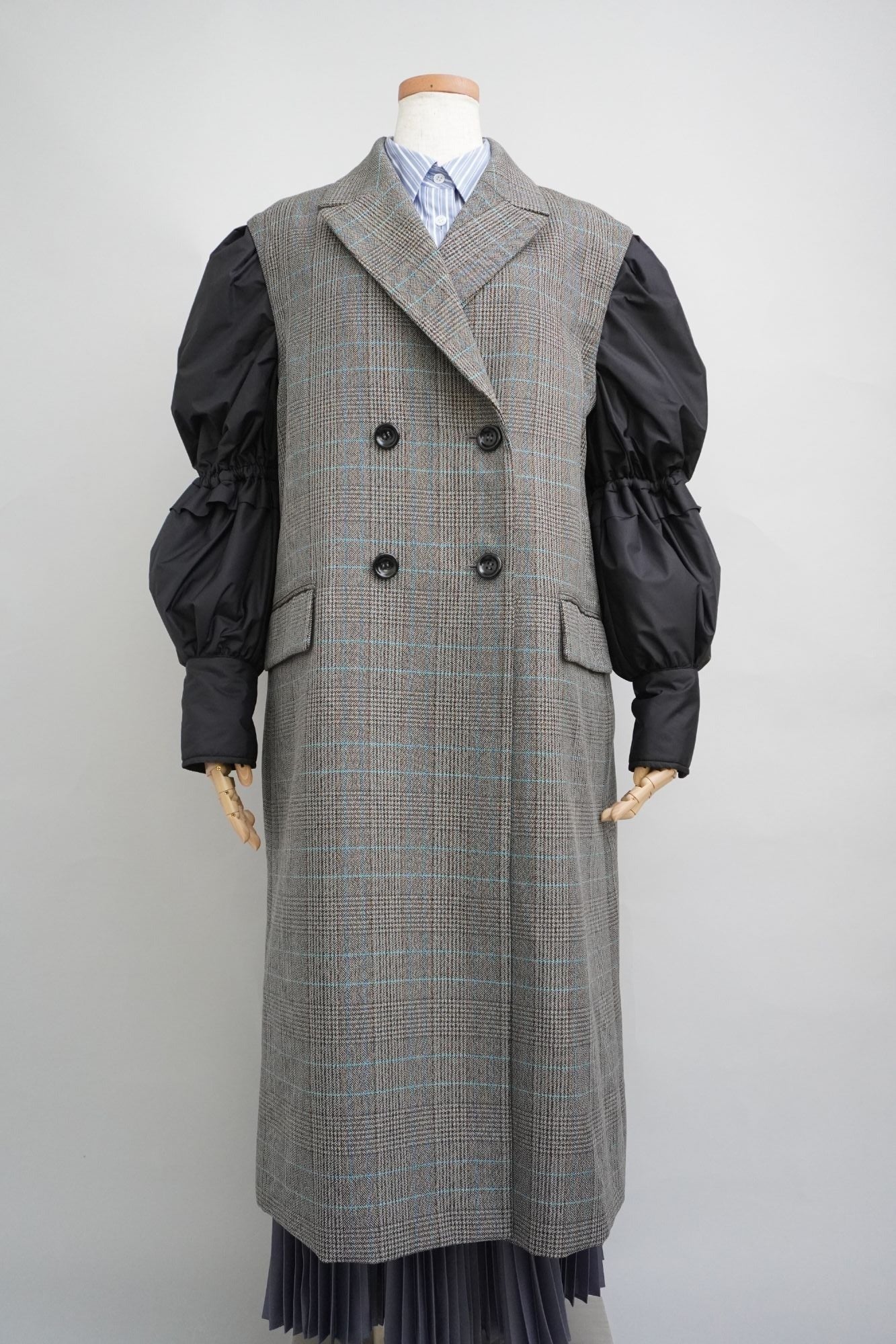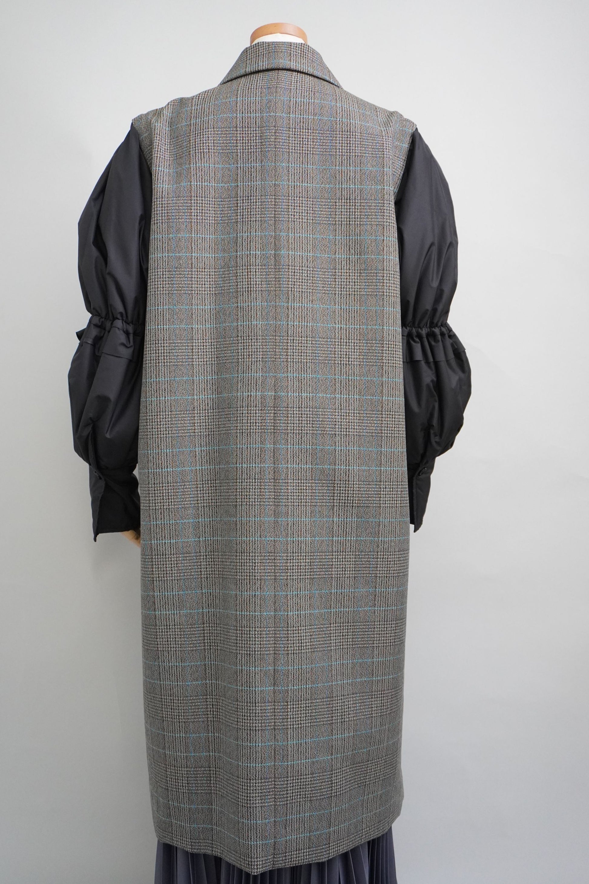 袖が取り外しできるチェックのコートです。