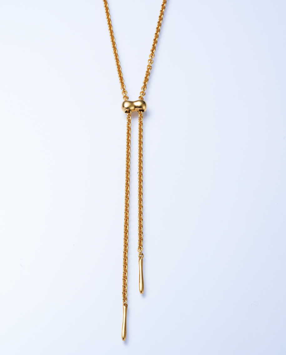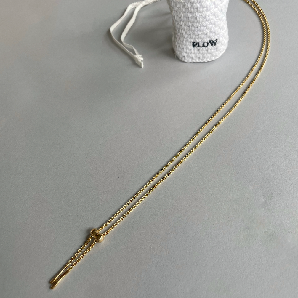 シンプルなネックレスは ビーズをスライドしてサイズの調整ができるスライダータイプ。