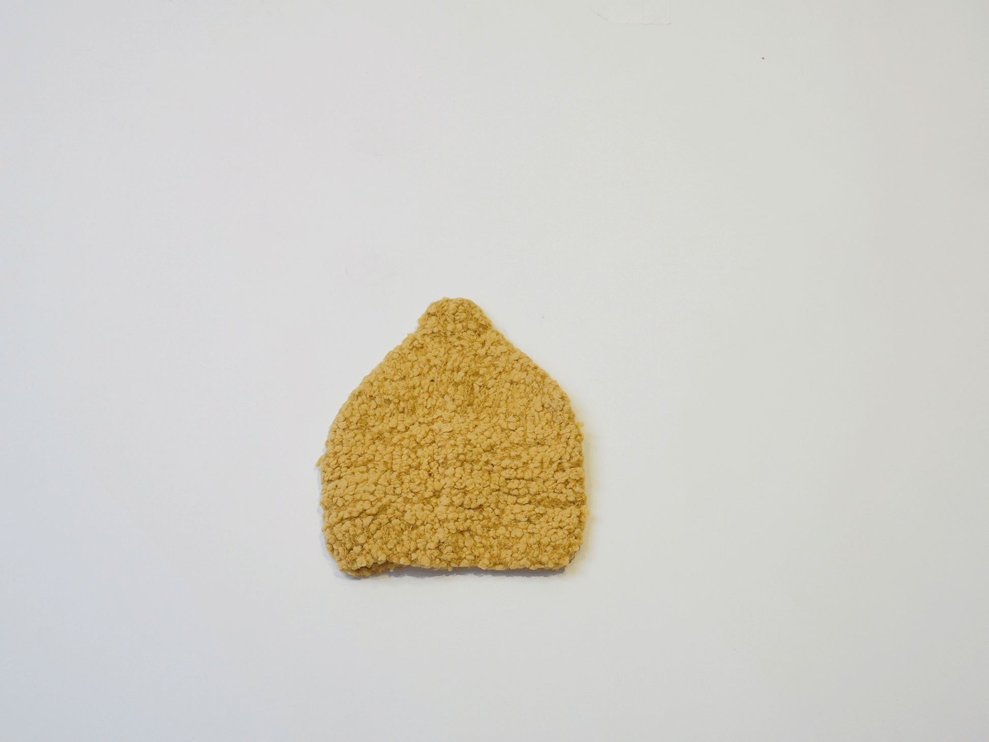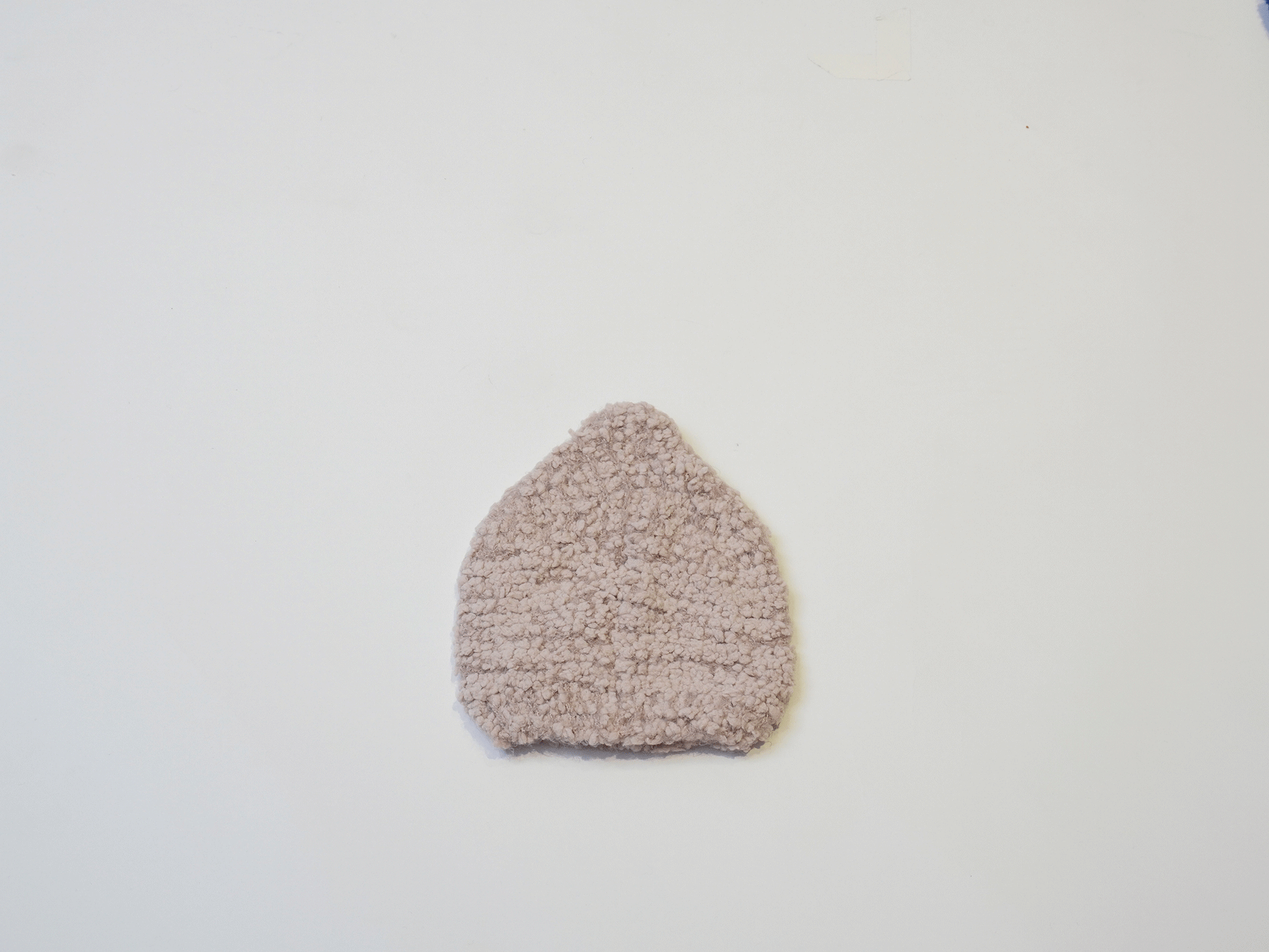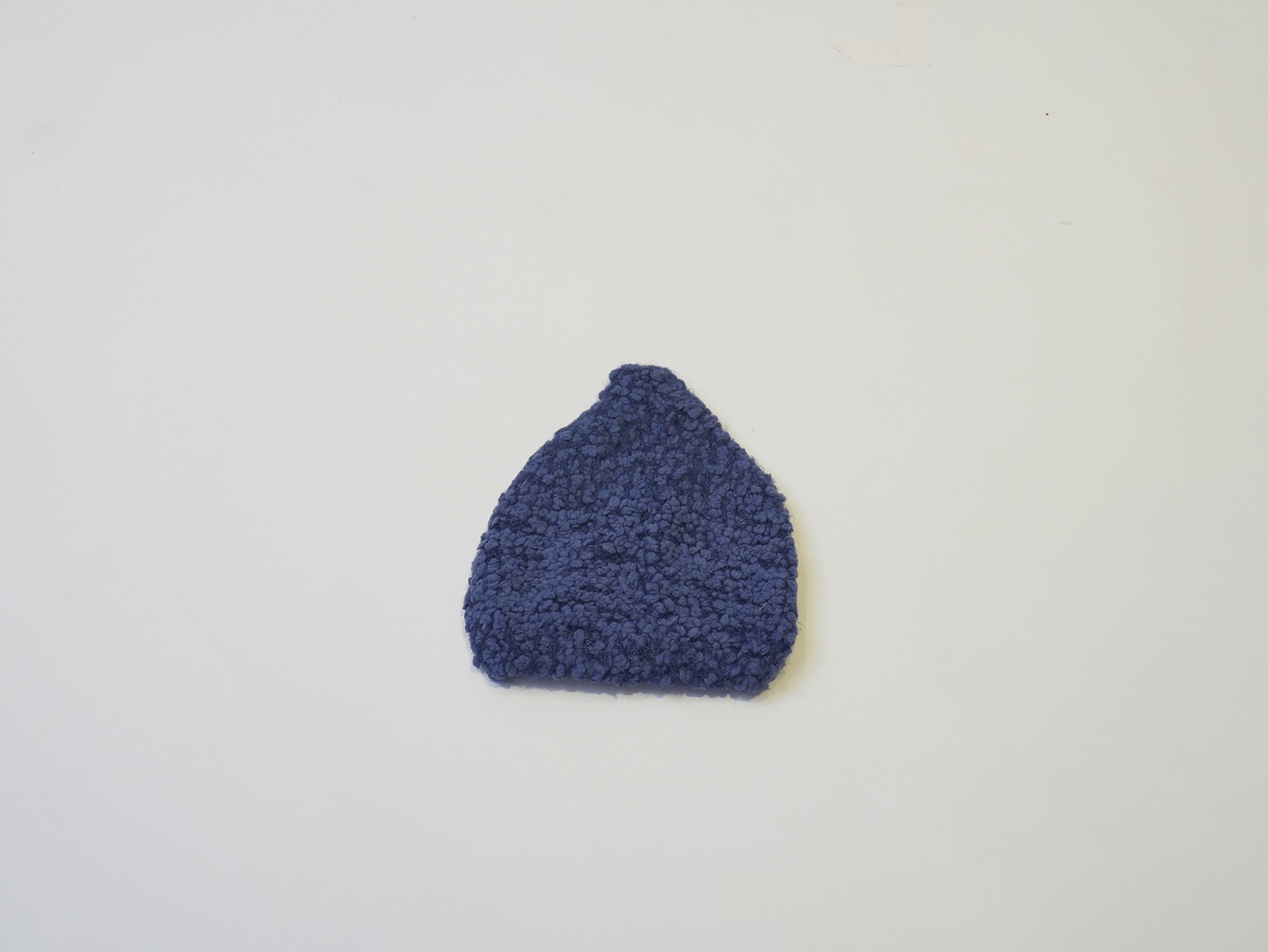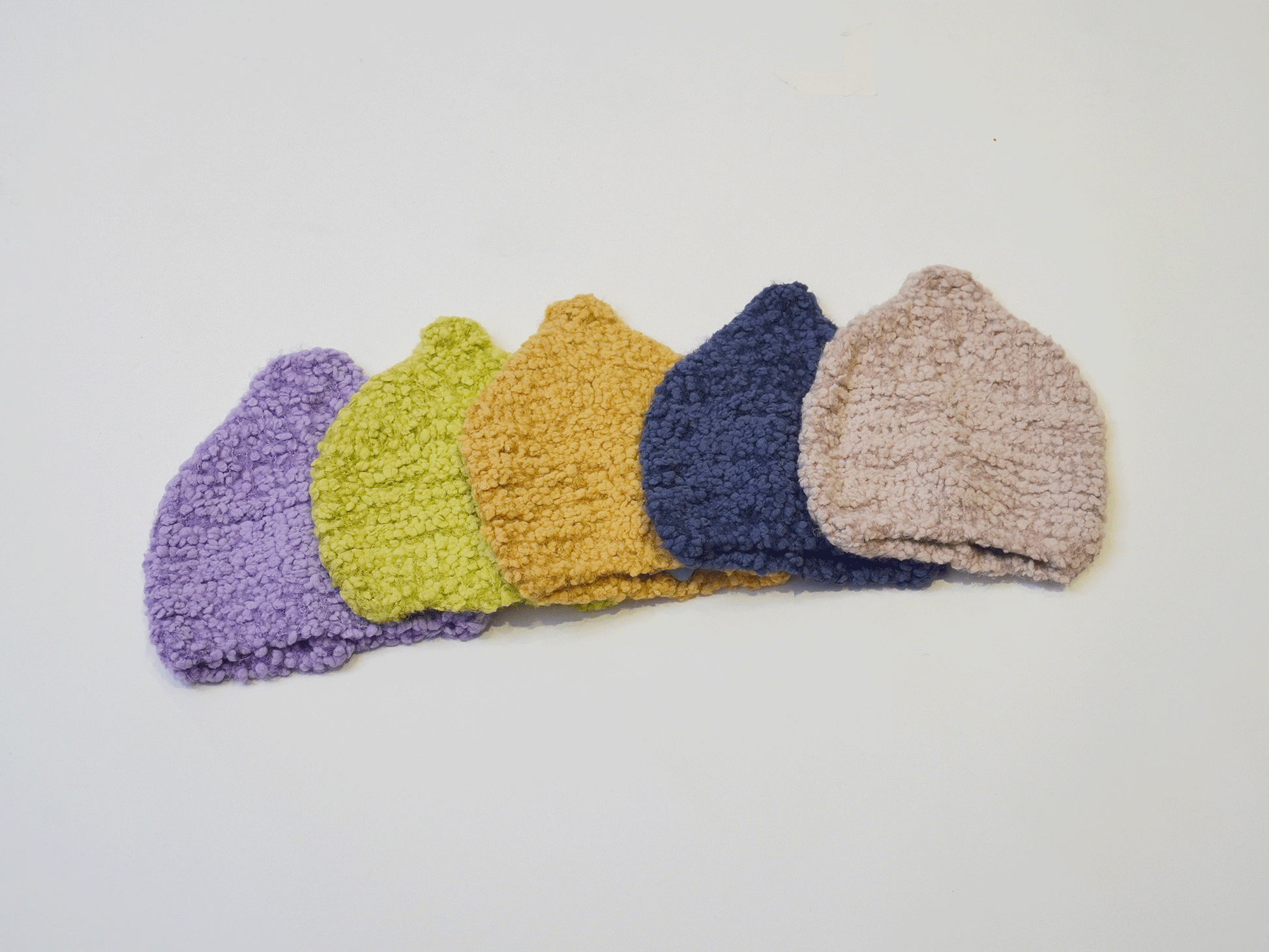 どんぐりのようなシルエットに、ぽこぽこした手触りの良い素材のニット帽。
