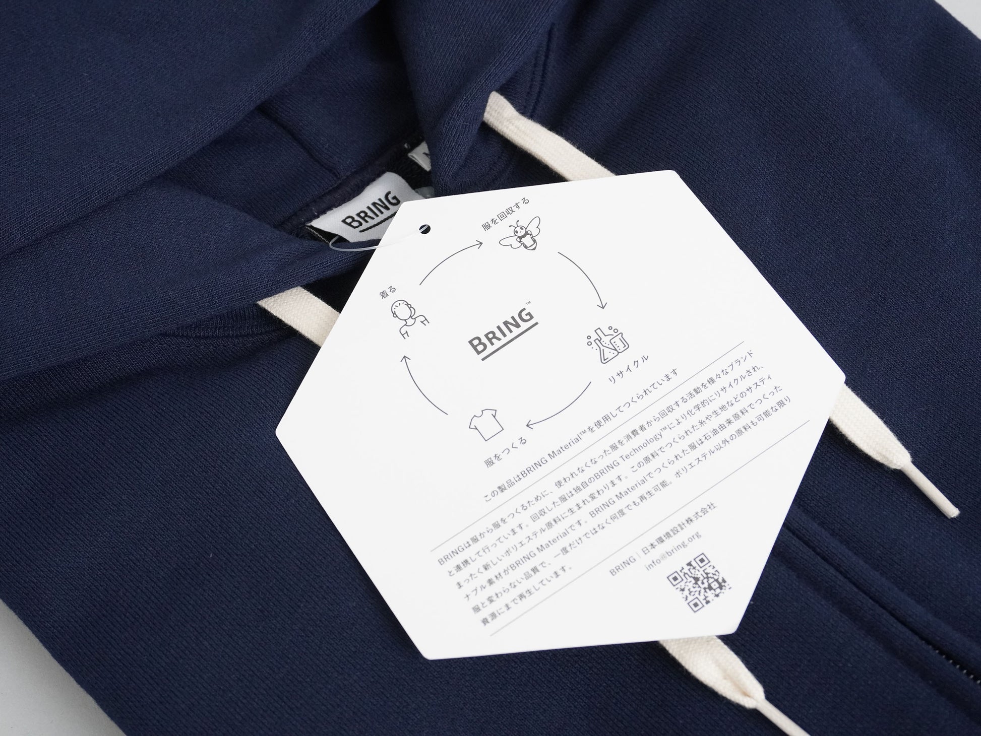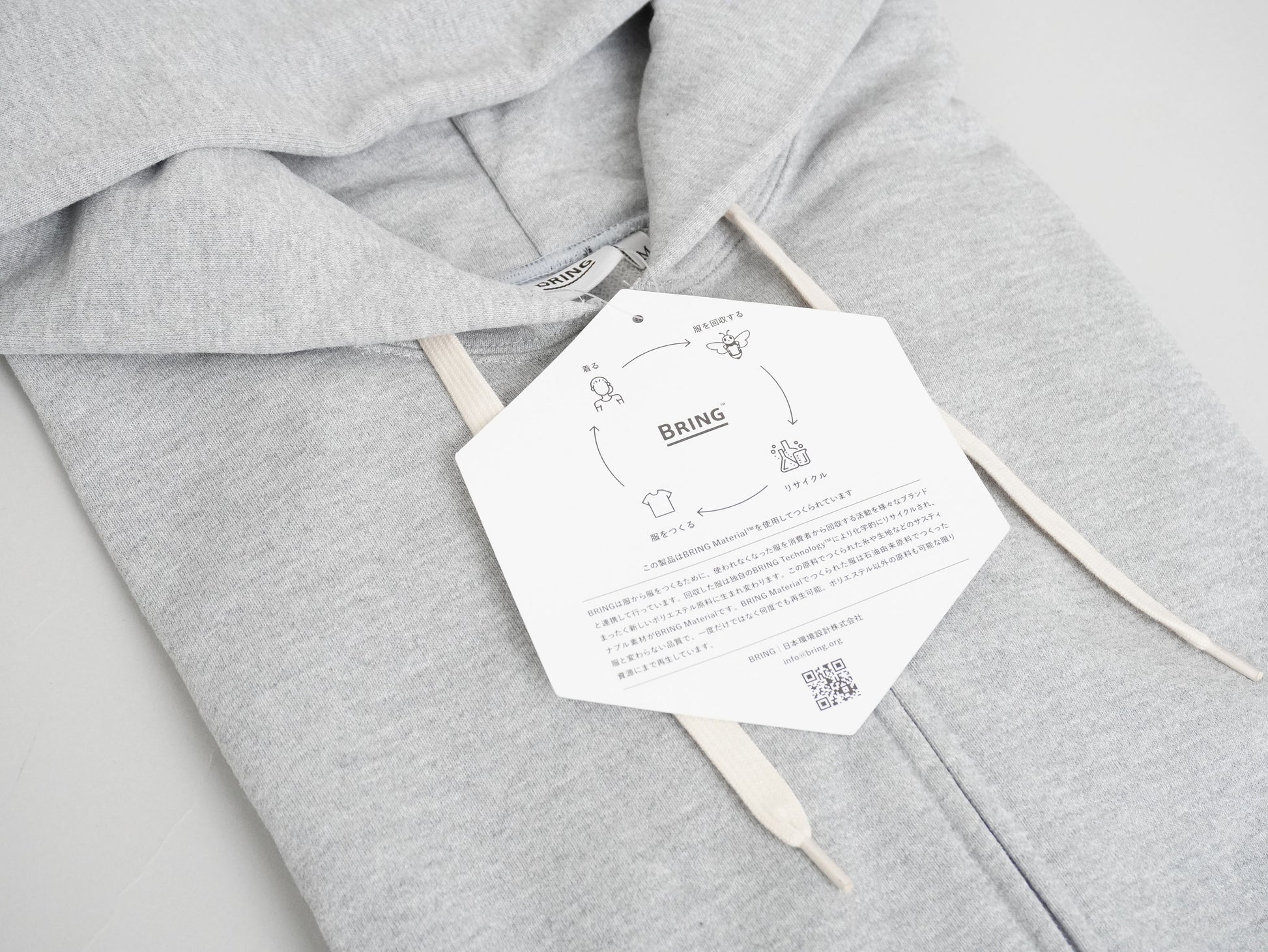 BRINGの裏毛ジップパーカーは、コットンのようなやわらかな肌触りが特徴です。街での普段づかいにも、また、山やジムで運動するときにも。クラシカルでありながら、袖と裾のリブを長めにした新しいボディデザインです。しっとりと柔らかく着心地の良いまるでコットンのようなポリエステルの裏毛は、高い吸水性と速乾性を兼ね備えています。