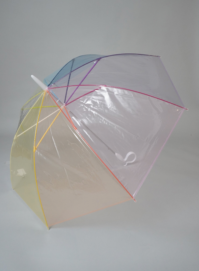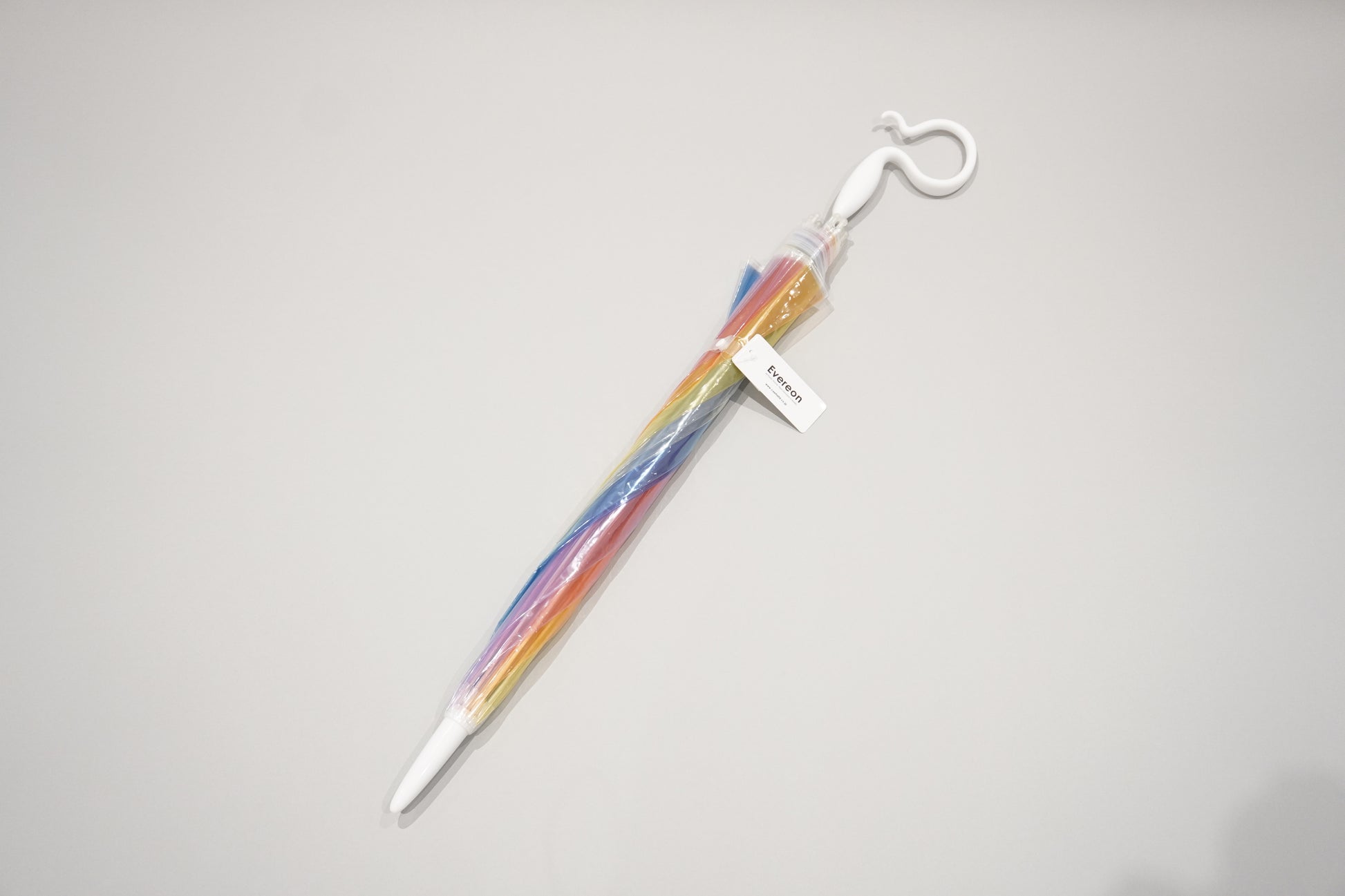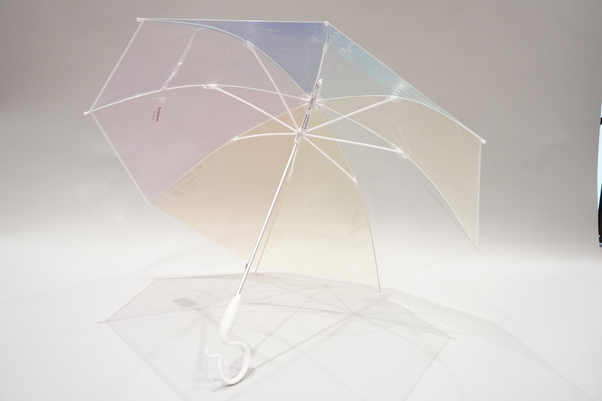 畳むと濃い色合いのレインボーcolorが、広げると淡い色合いに。シンプルなホワイトの傘骨も主張しすぎず使い勝手抜群です。