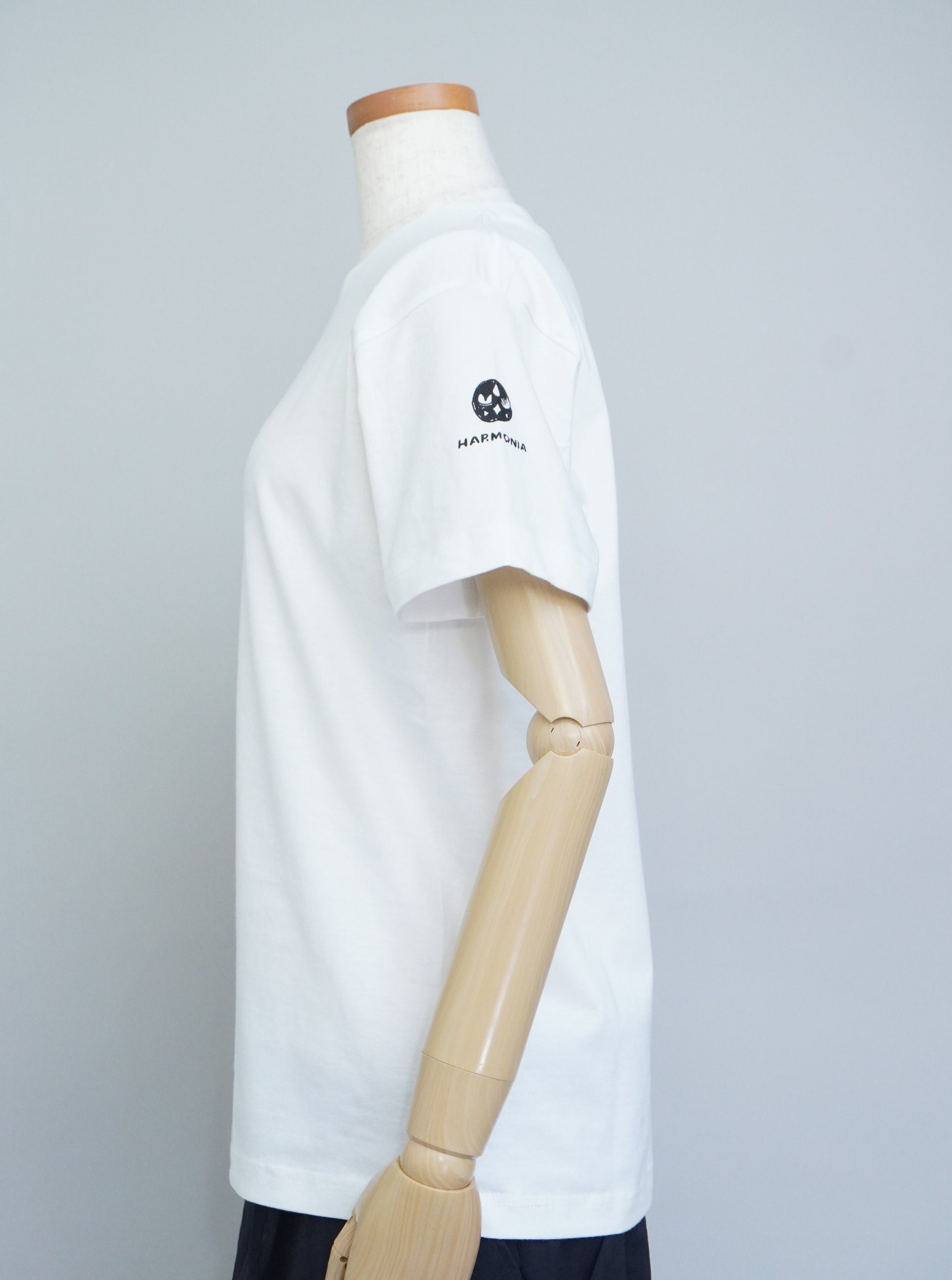 袖と背中にさりげなく入ったデザインと、オーガニック素材でやさしい肌触りが特徴の一着です。