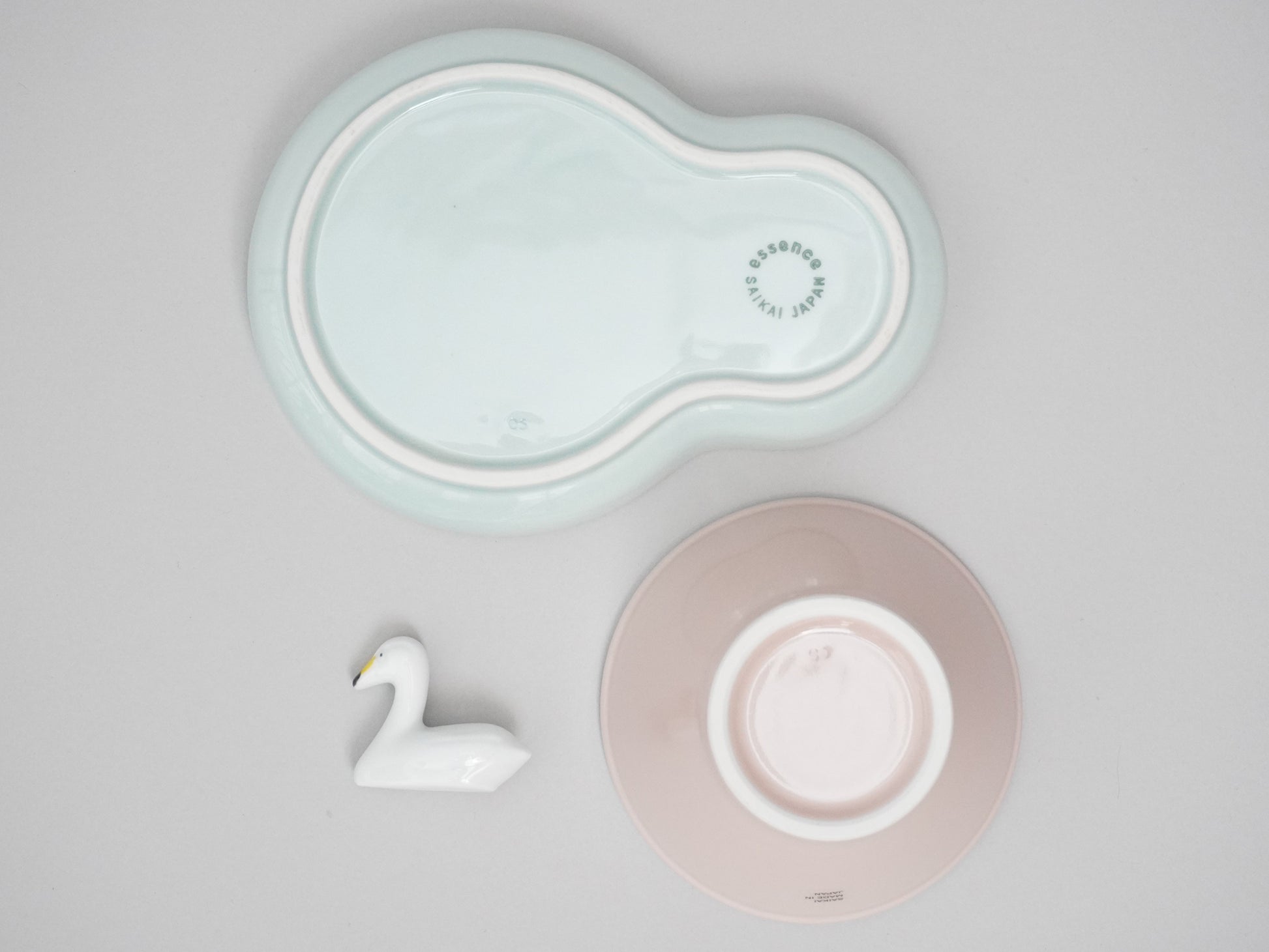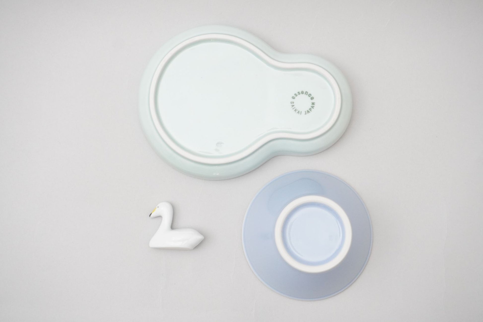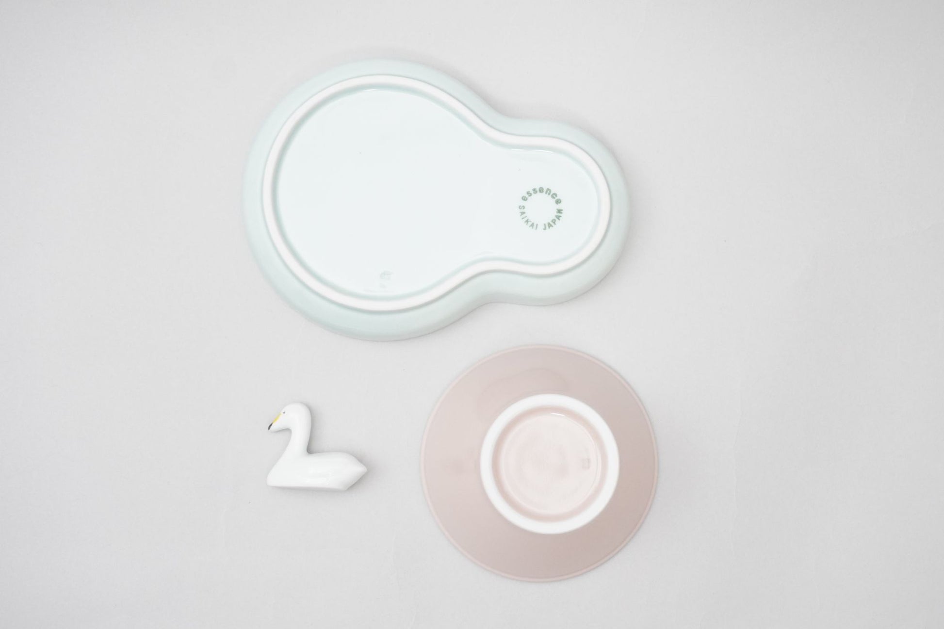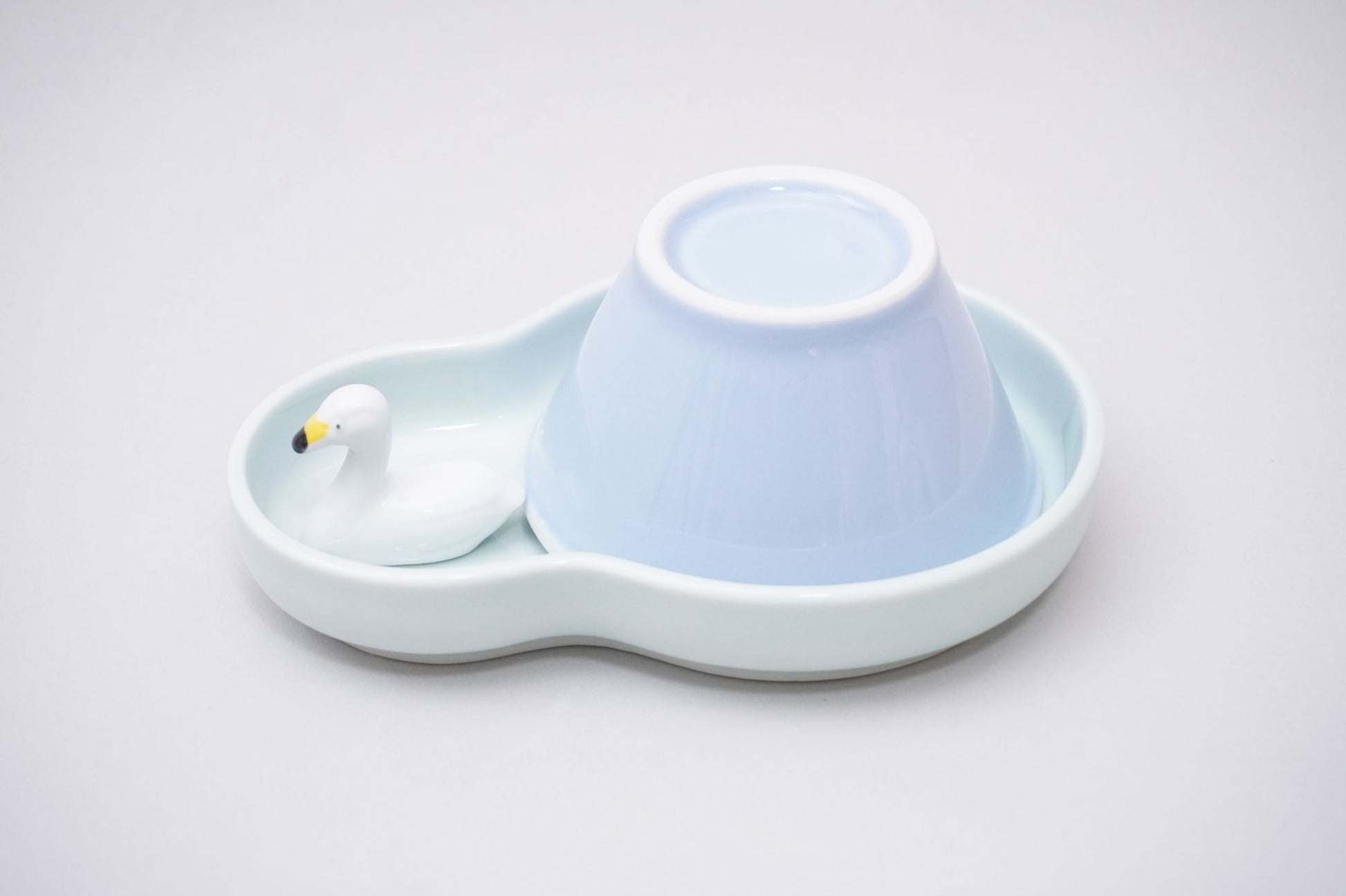 山型のボウルにひょうたん池のプレート、そこにちょこんと浮かぶスワンのレスト。パステルカラーが可愛らしい、眺めるだけで心が弾むキッズセットです。