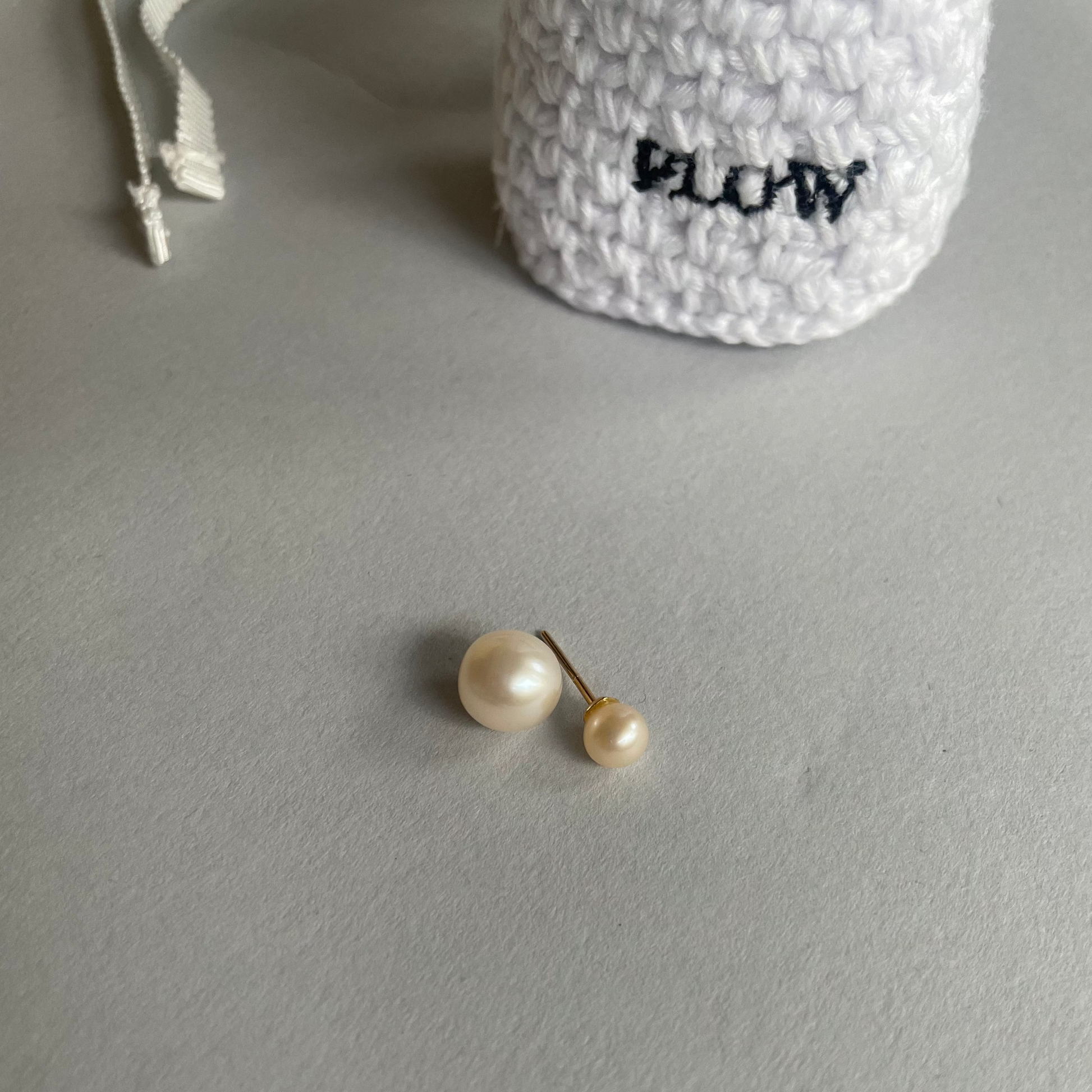 キャッチの部分にも同じくパールをあしらったリバーシブル仕様。どちらも主張の過ぎないサイズ感のパールは様々なスタイリングと合わせやすく、特別な日のお出かけや普段の装いにも使いやすいアイテムです。その日の気分や装いにあわせお楽しみください。
