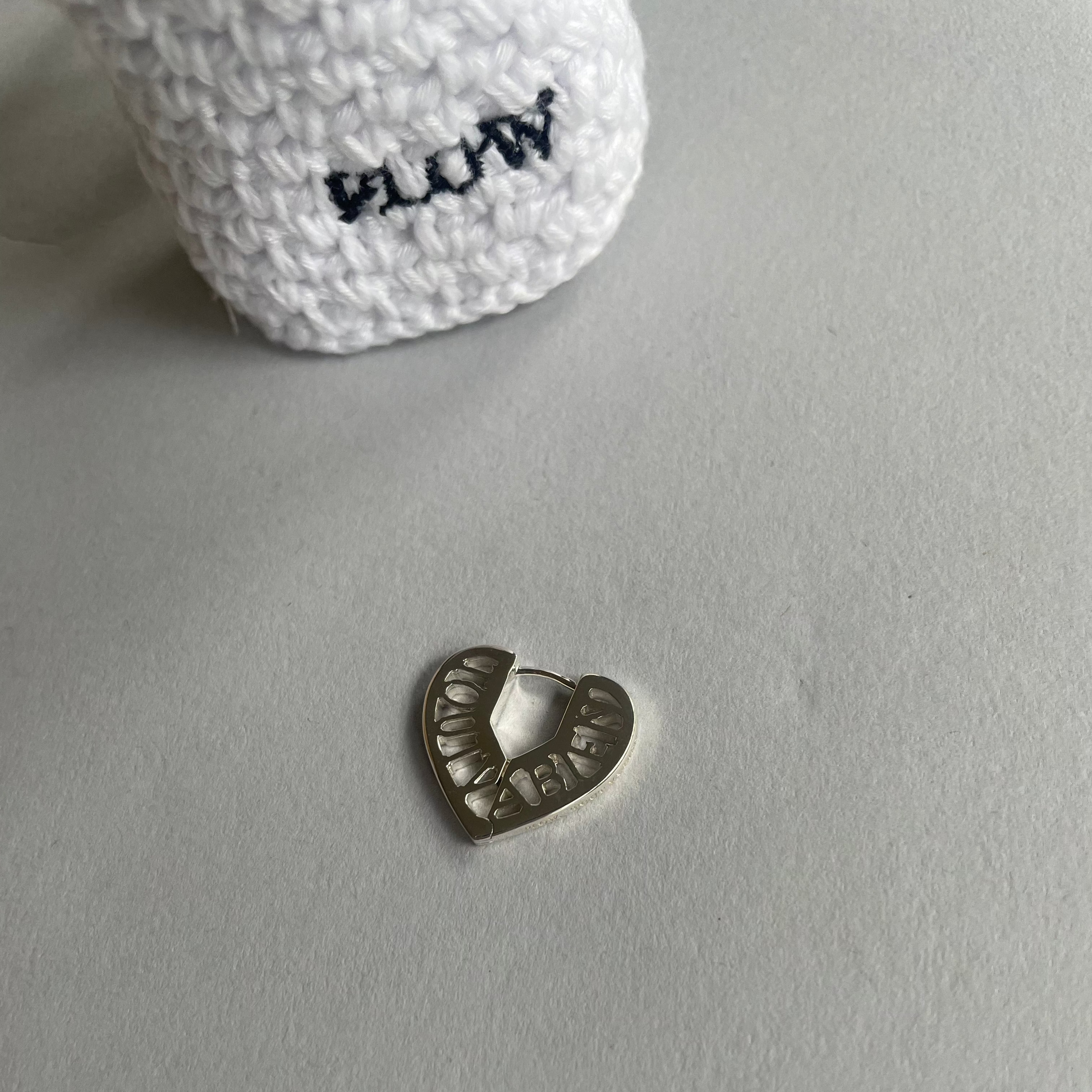 シンプルながらも存在感のあるハートのフープピアスは、キャッチレスデザインで着脱しやすいのもポイント。