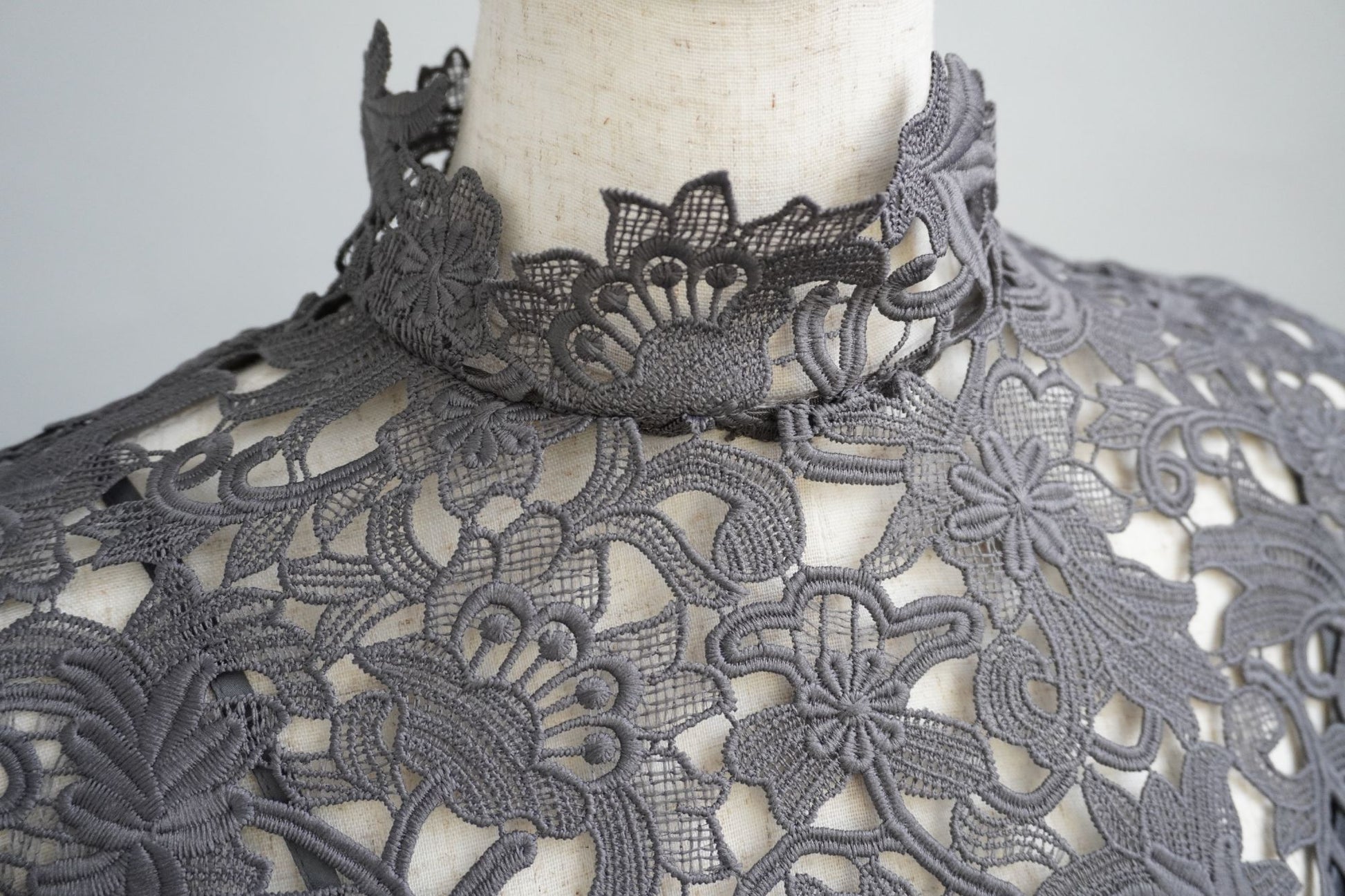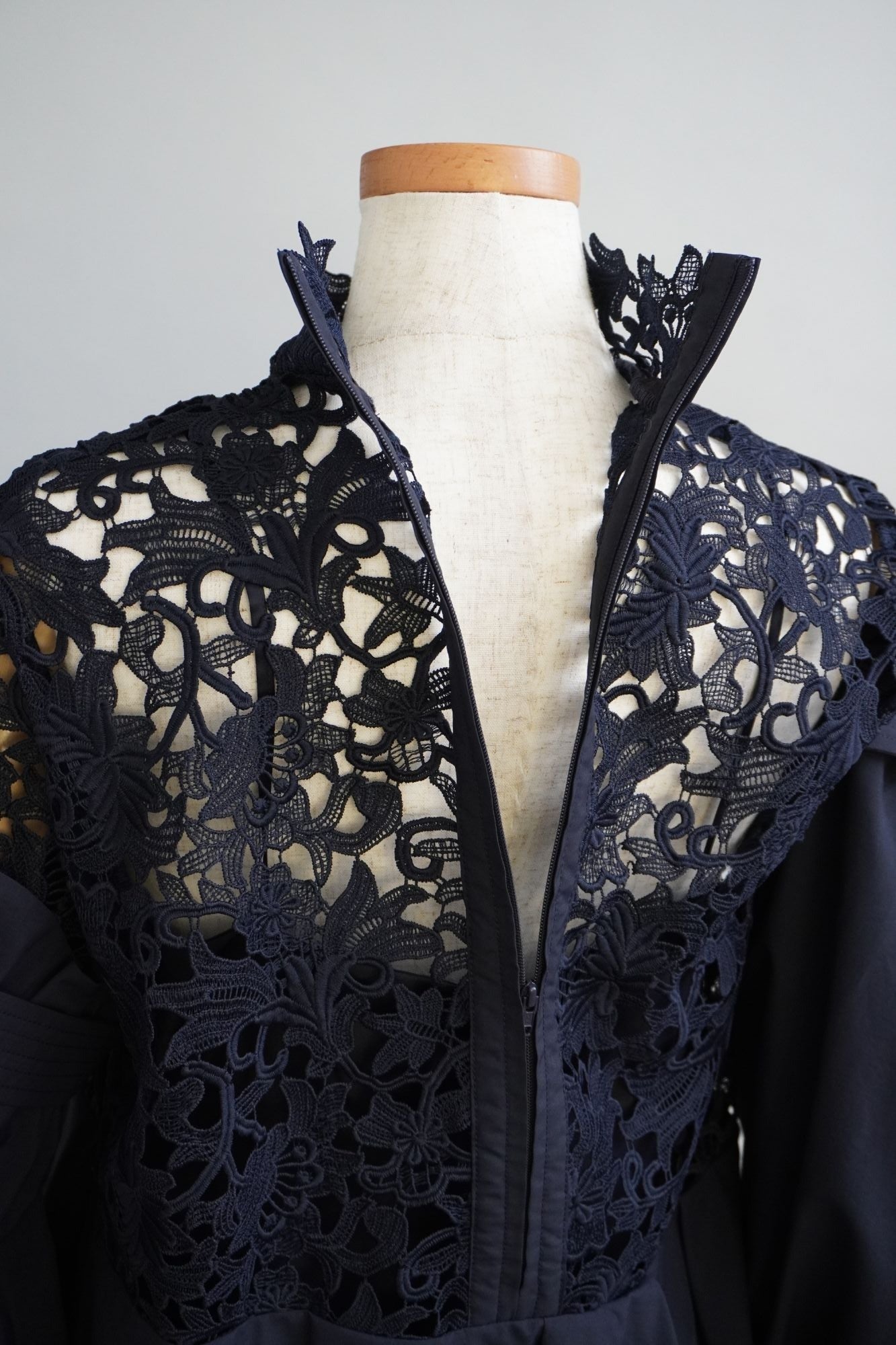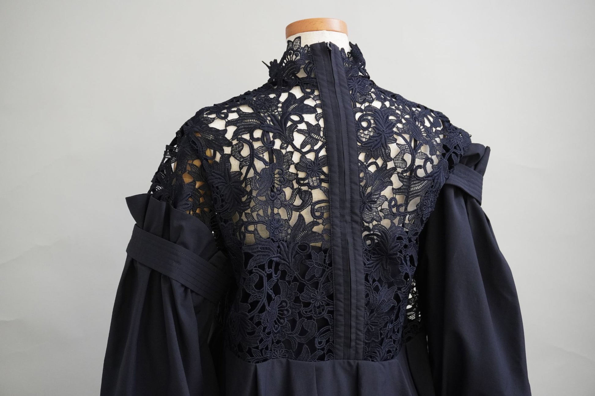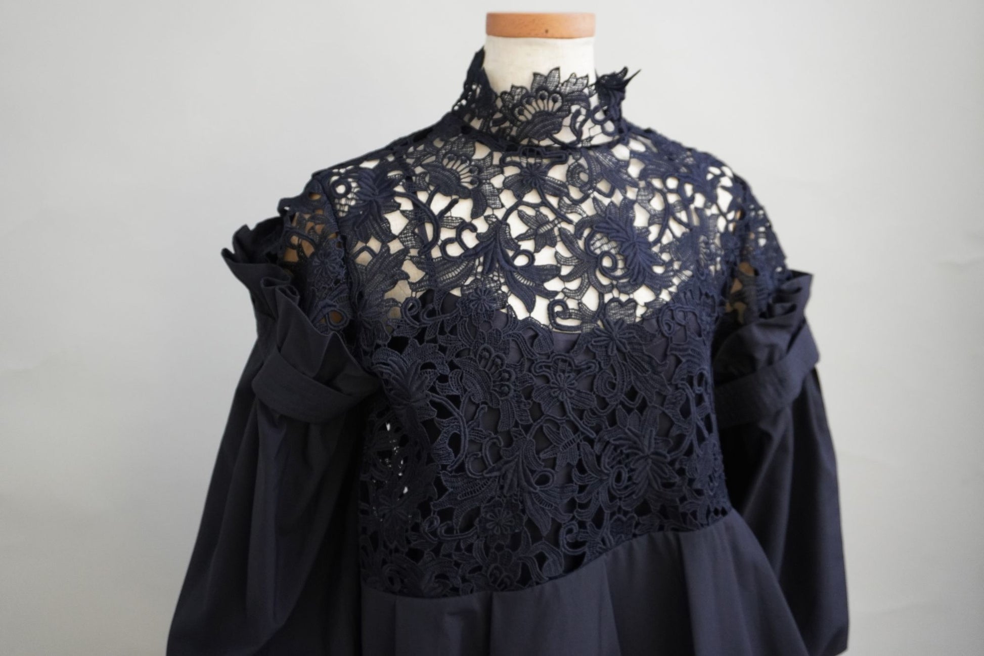 オリジナルのレース生地にポリエステルの軽い生地を組み合わせた商品で、 袖と身頃の切り替えによる分量感を出し全体にゆったりしたシルエットですが、布帛素材の軽さで女性らしさを表現しております。