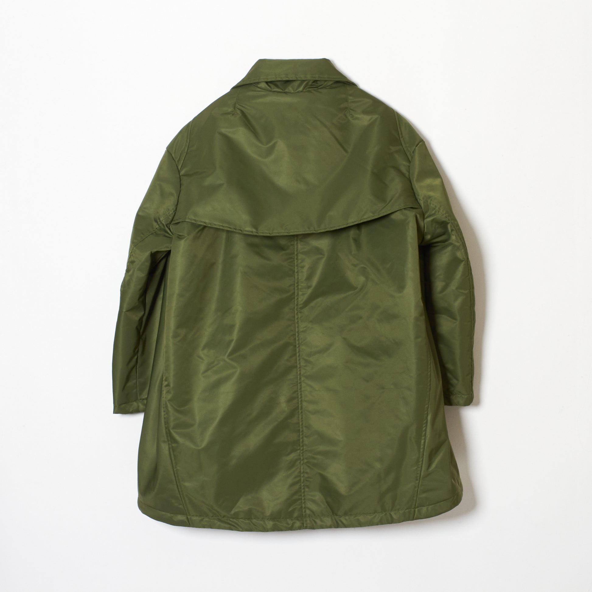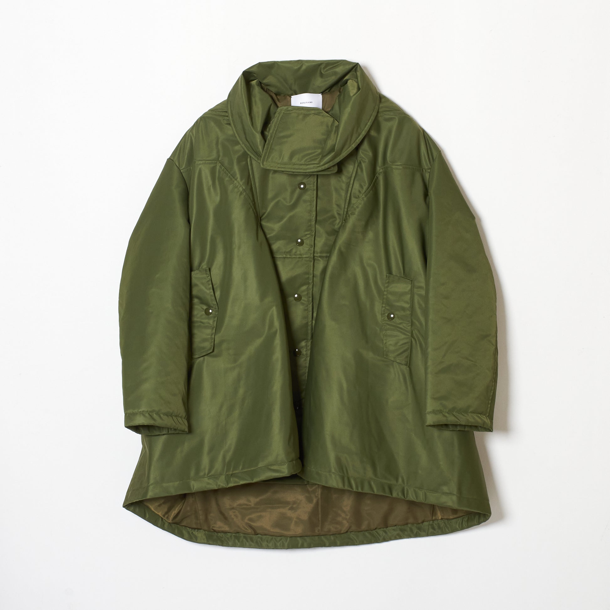 中綿入りAラインのコートで、アーミーコートからのイメージで仕上げているものです。