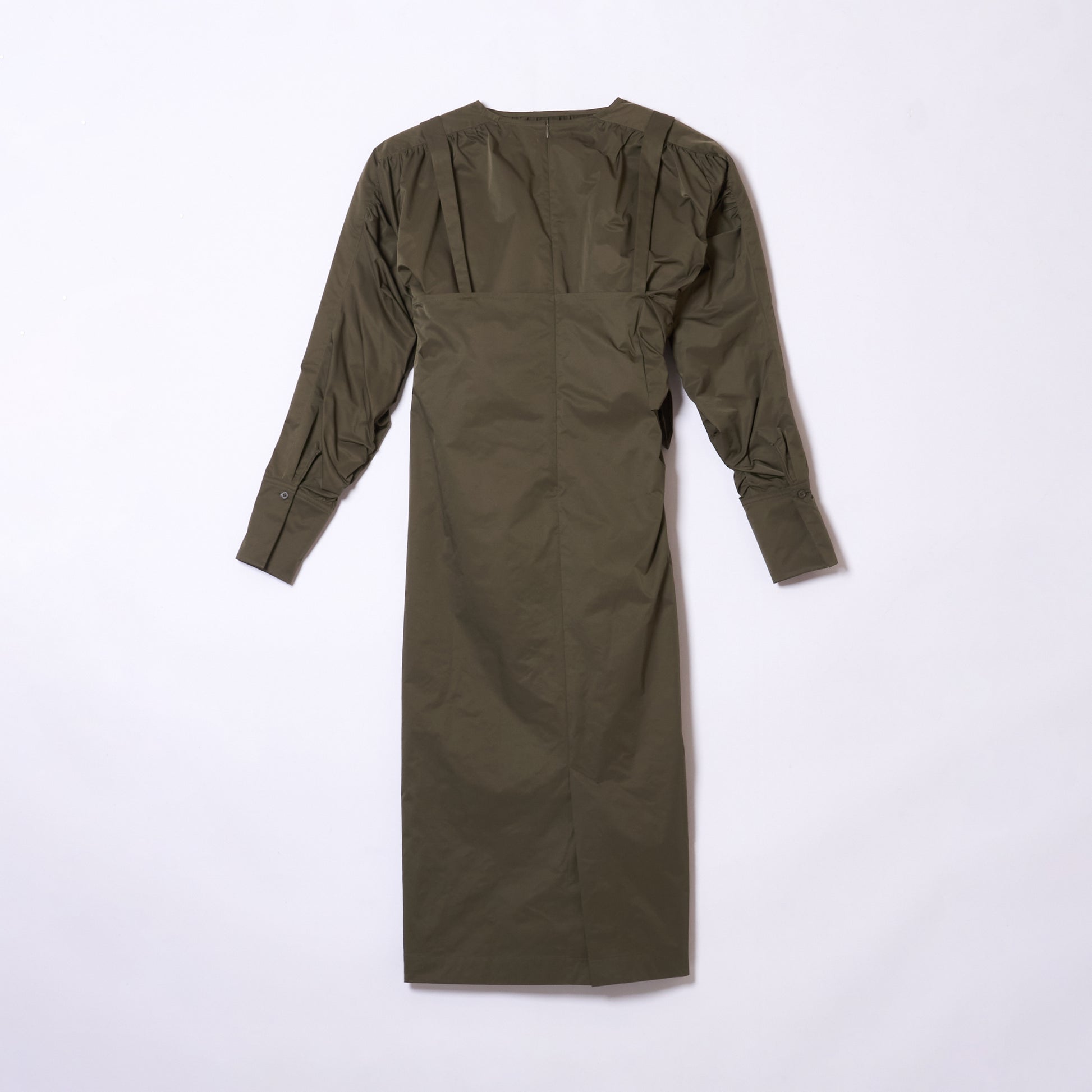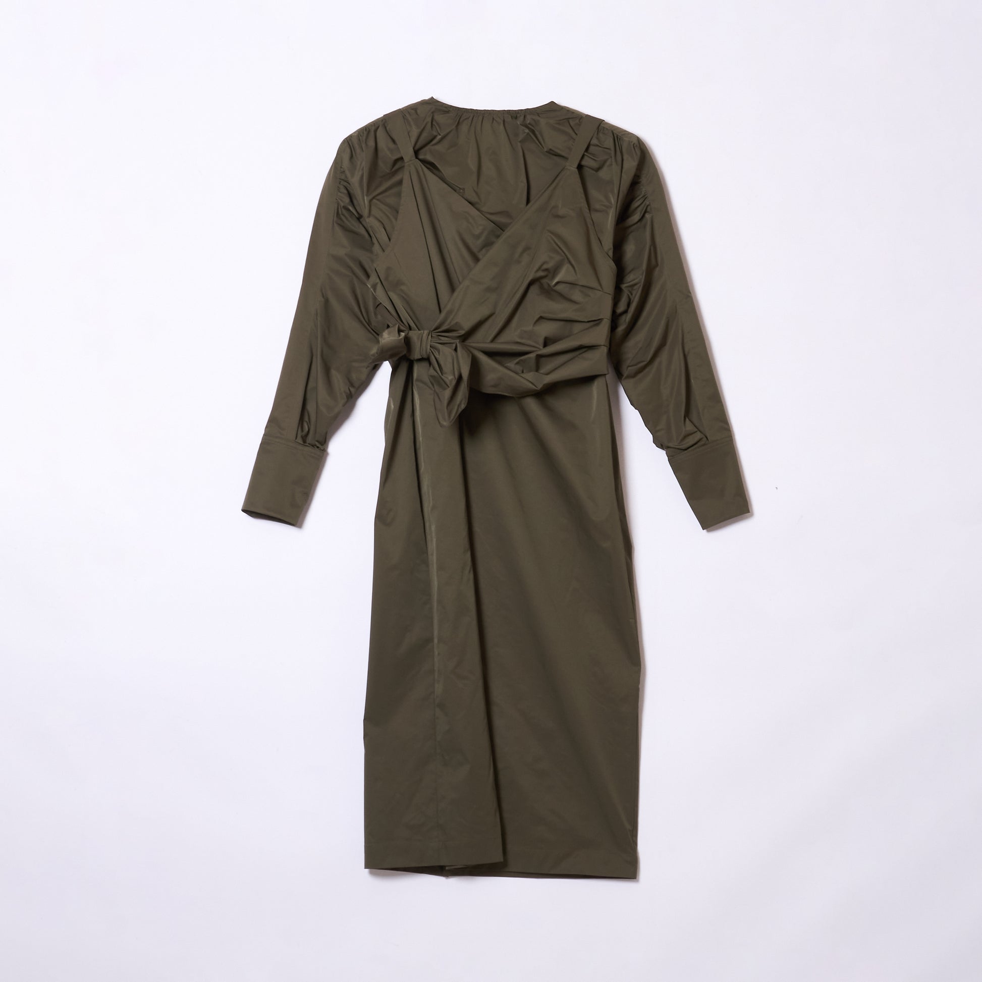 カシュクールの重ね着風ワンピースは、リラックスした雰囲気ながらハリのある素材でシルエットの美しさが特徴。一枚でコーディネイトが決まるアイテムです。サイズ1