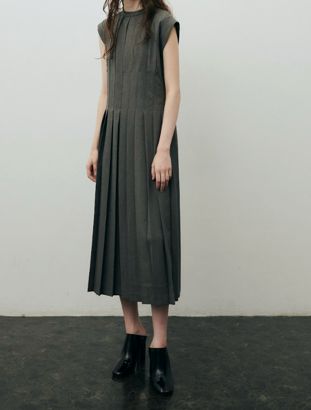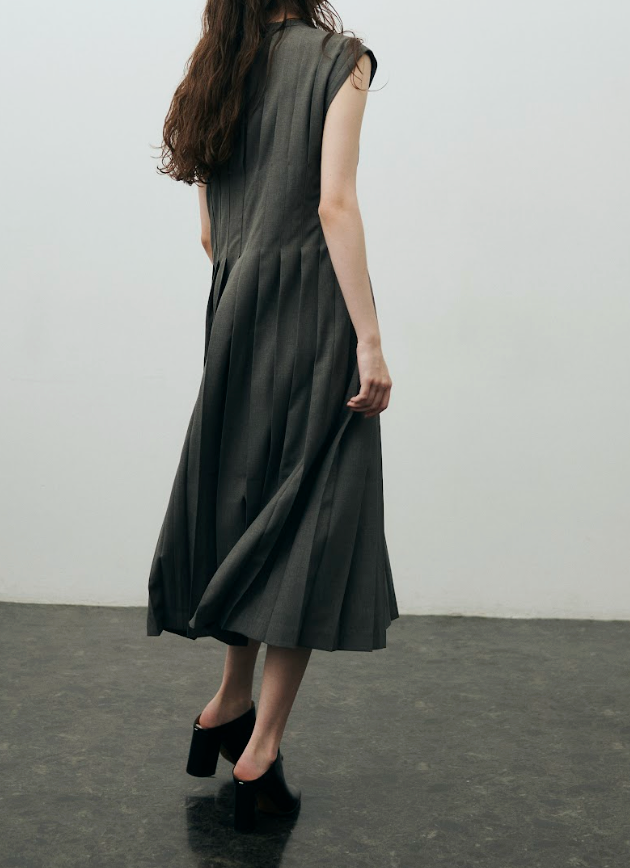 シルエットの美しくさが際立つシンプルなワンピースです。どんなシーンも問わず活躍するアイテムとなっています。