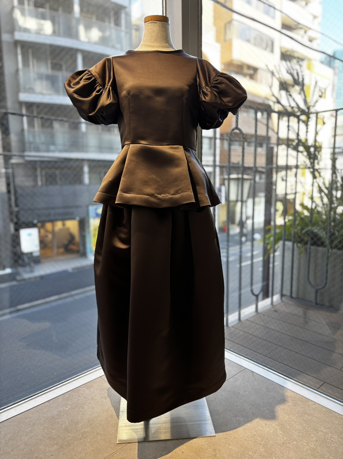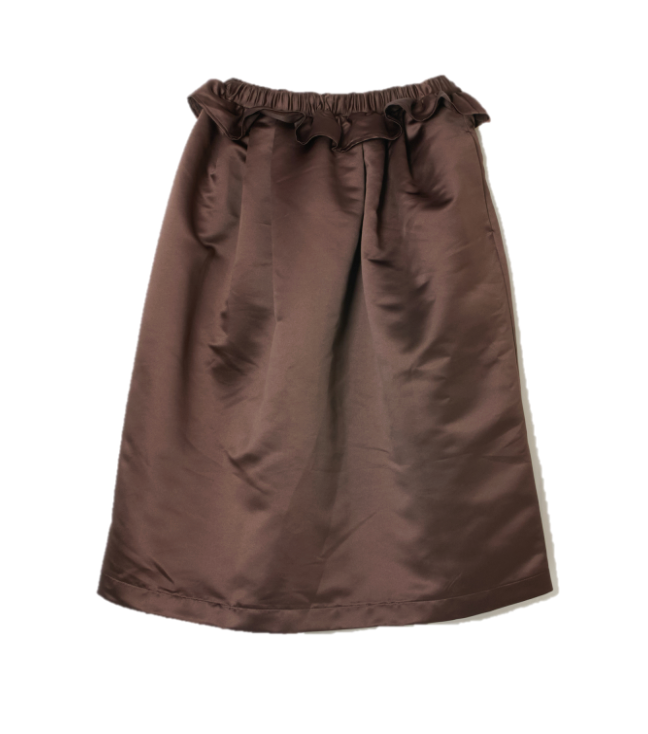 光沢感のあるブラウンカラーのスカートは、合わせるアイテムでシックにもカジュアルにも。TOPSとのセットアップも楽しめるアイテムです。