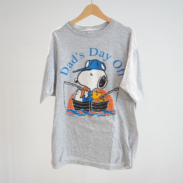 釣りを楽しむスヌーピーが大きくデザインされたヴィンテージTシャツ。
