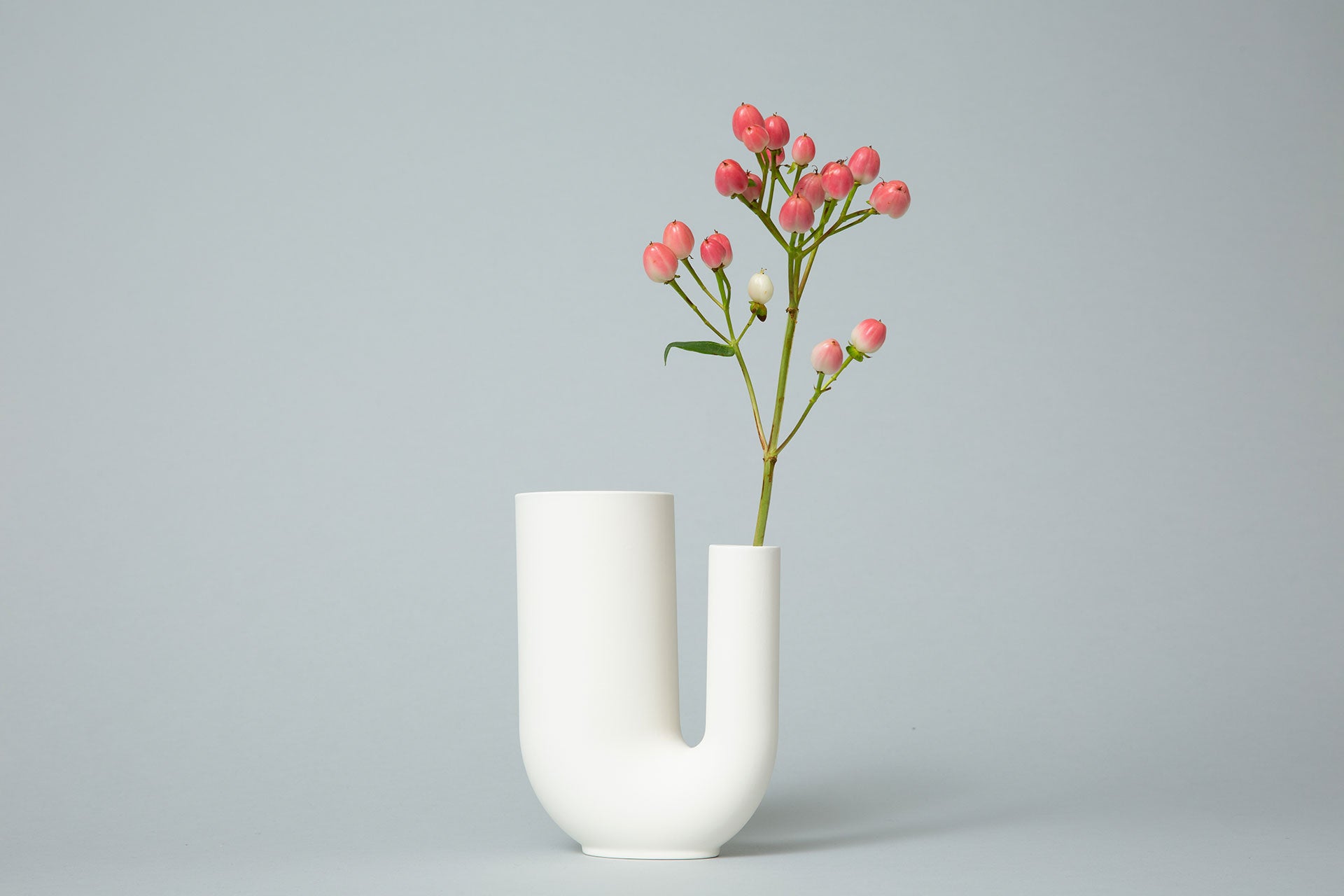 大小2つの瓶が備わったTuba(S)で、一味違う自分なりの活け方を編み出してみてください。片方には花を一輪だけ、もう片方にはいっぱいの葉を。もしくは、シンプルに違うタイプの花を同じ瓶に挿してみても。